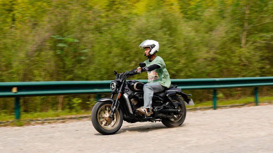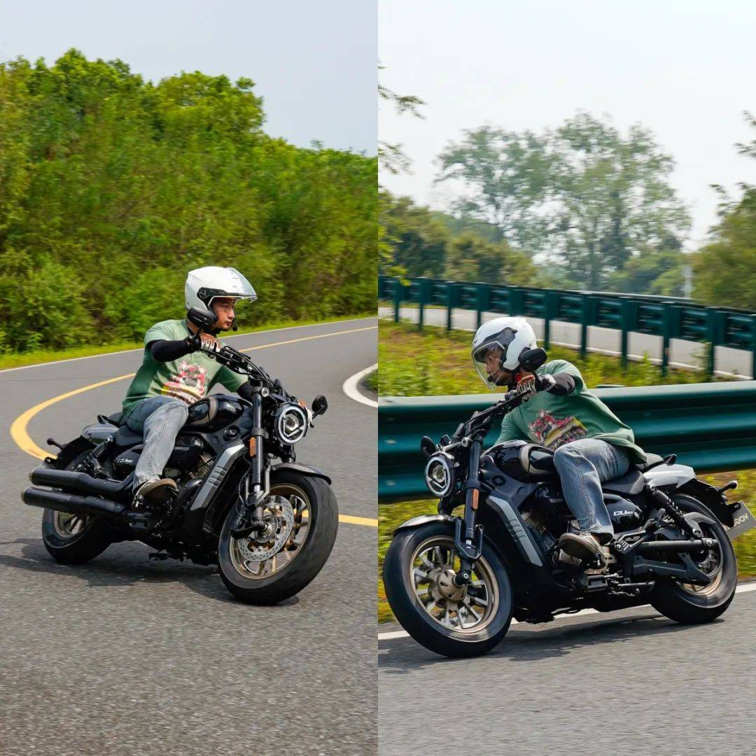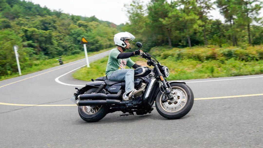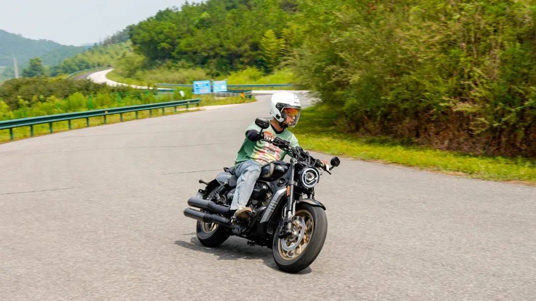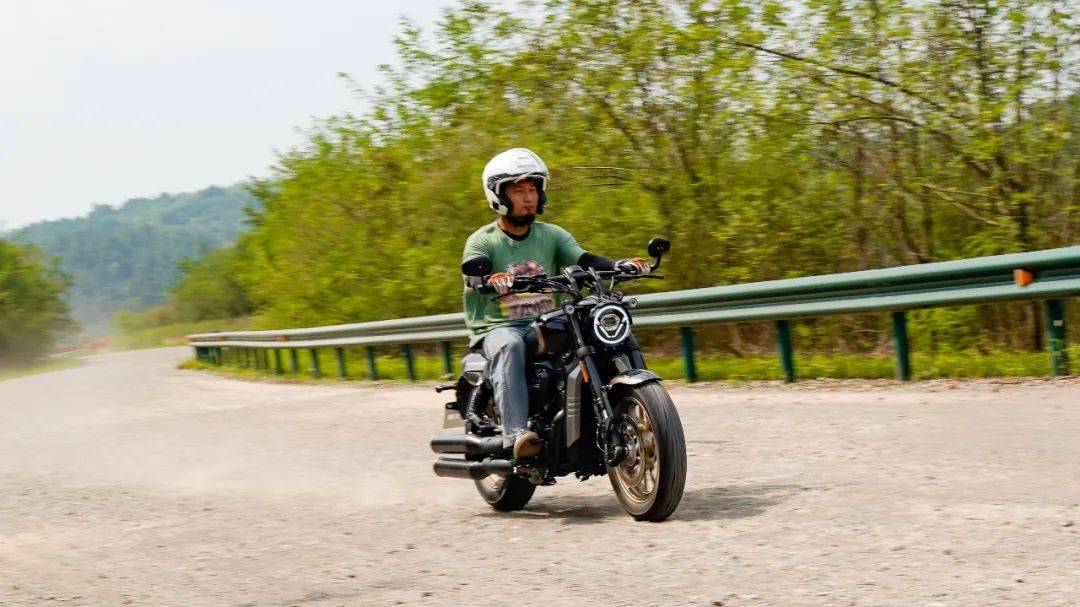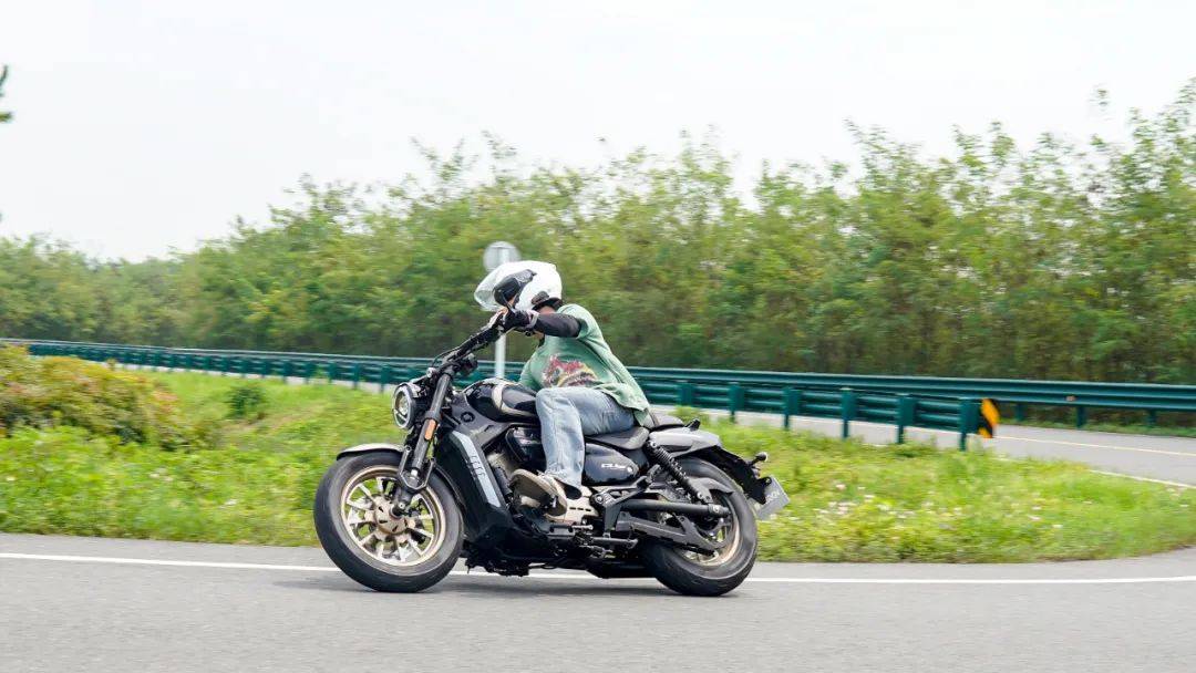 同樣是春風(fēng)十里的場地,CU250的表現(xiàn)與我們測過的CU525相比其彎道極限會更低一些,這也是照顧到新手朋友的設(shè)定,防止新手朋友對車輛極限沒底,探傾角而導(dǎo)致危險。其余的各項表現(xiàn)上CU250的表現(xiàn)堪稱運動型巡航的典范,只有1460mm的軸距,加上前120/80-16和后150/80-15的輪胎尺寸,使得CU250在騎行時給人的第一感受如街車般的靈活。在入彎前連續(xù)降檔,滑動離合器的質(zhì)感輕盈,檔位清晰好用,在重剎減速時前避震器的下沉量也不大,避震器的支撐性良好,連續(xù)的左右翻身以及回頭彎,車身的響應(yīng)及時,這在一臺入門級別巡航車中是非常難得的表現(xiàn)。同時CU250上配裝的這套赫璐S06輪胎,不管是在緊急制動還是重剎,以及彎道中的表現(xiàn)都很OK,沒有絲毫抓地不足的感覺,在輪胎還有一指距離滿胎時,腳踏的探地釘已經(jīng)觸地,所以只有較為激烈的壓彎時,才會觸到腳踏極限,應(yīng)對日常的跑山完全足夠。通過連續(xù)的山路駕駛,可以看到CU250的性格也很明顯,就是一臺易于駕馭,好騎的入門級巡航車,同時超低的震動,如街車般靈活的操控性能,可以稱得上一臺好騎的巡航車,表現(xiàn)相當出色。