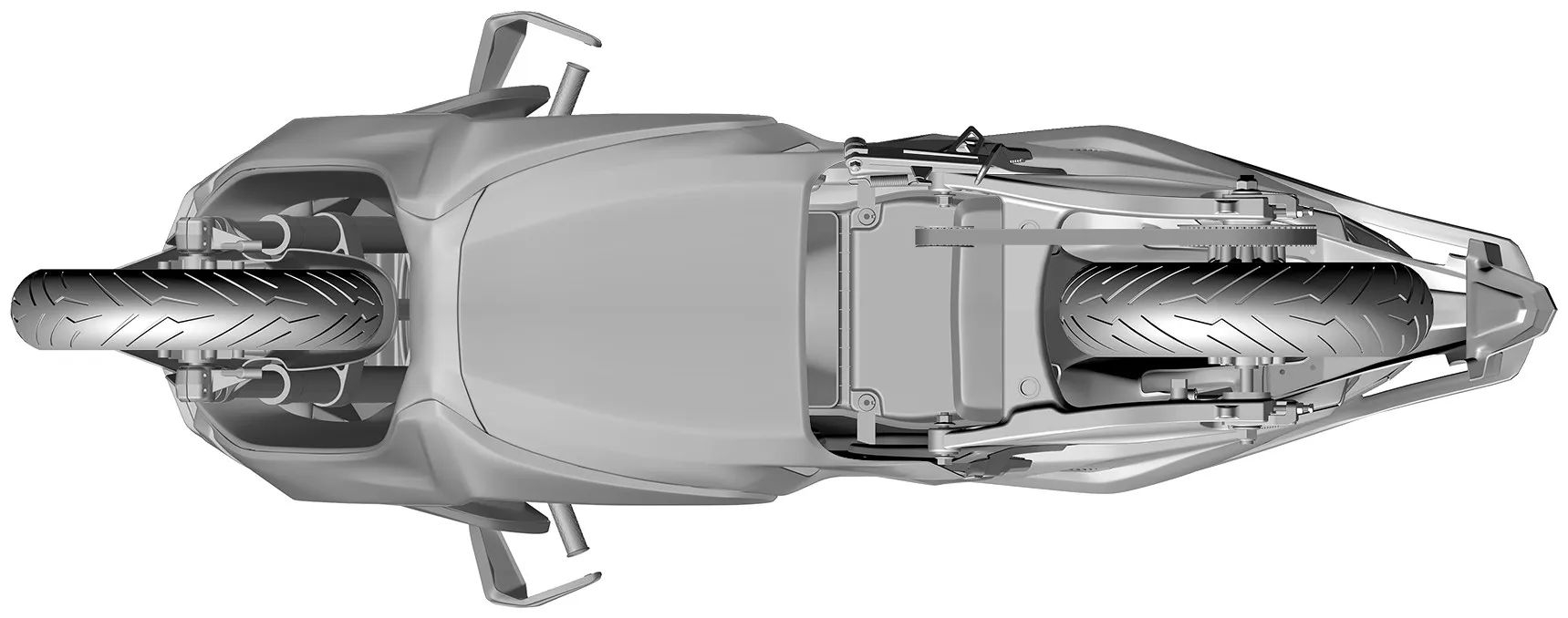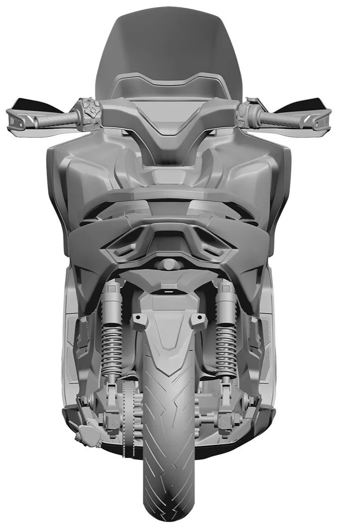 那么從申請(qǐng)的專利來看,首款摩托車是電動(dòng)踏板摩托車型,而且是大型龍骨踏板車型。