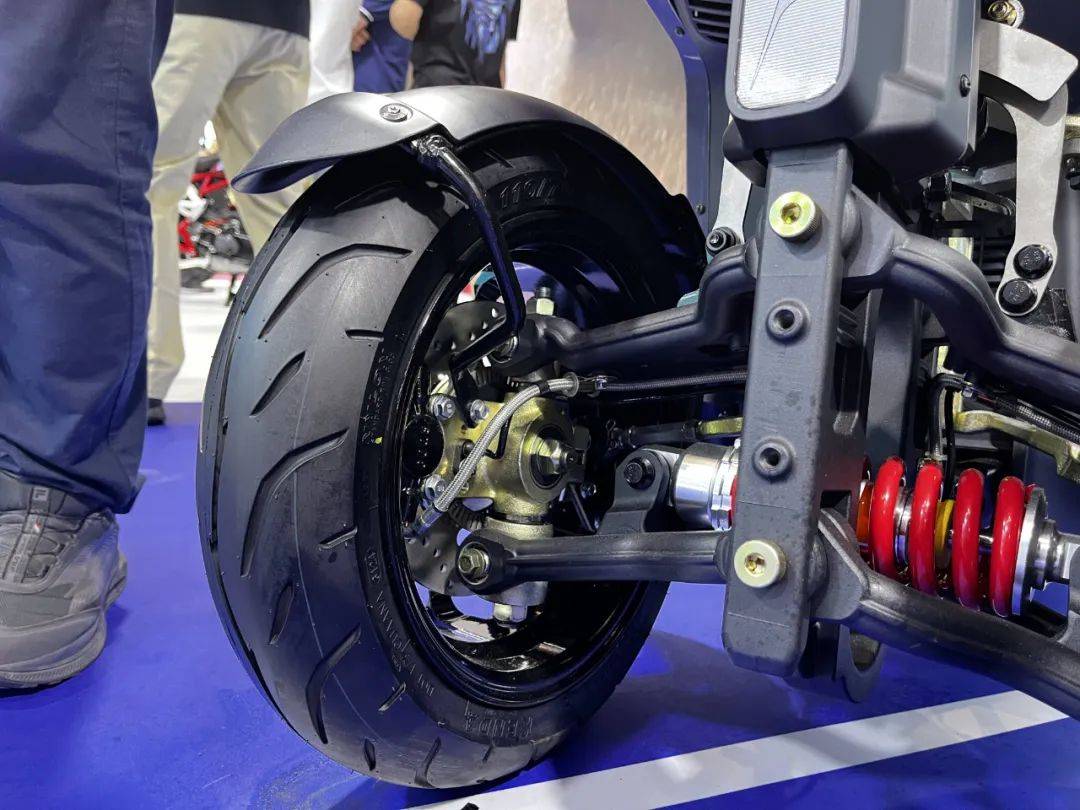 AD7 150的前懸采用鋁合金雙A臂結(jié)構(gòu),擁有43個軸承,保證了轉(zhuǎn)向的靈活性和機械強度。側(cè)傾角度可達27度,后輪后懸采用雙減全鋁合金搖臂,通過汽車級調(diào)教優(yōu)化懸掛參數(shù),確保了高速行駛的穩(wěn)定性和中低速操控的性能。這樣的設(shè)計不僅在穩(wěn)定性上超越了傳統(tǒng)兩輪機車,更提供了無與倫比的駕駛樂趣。