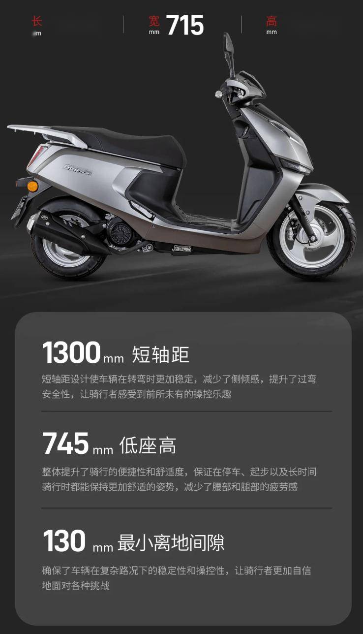 力帆 GRH125 配備手把坡道駐車(chē)制動(dòng)、真空胎 / 鋁合金輪轂、中置物箱、靜音邊撐,以及階梯式整體坐墊 + 鋁合金后扶手;同時(shí)該車(chē)還搭載全系 LED 燈具、大屏負(fù)顯儀表、USB 充電接口、前置物箱等。