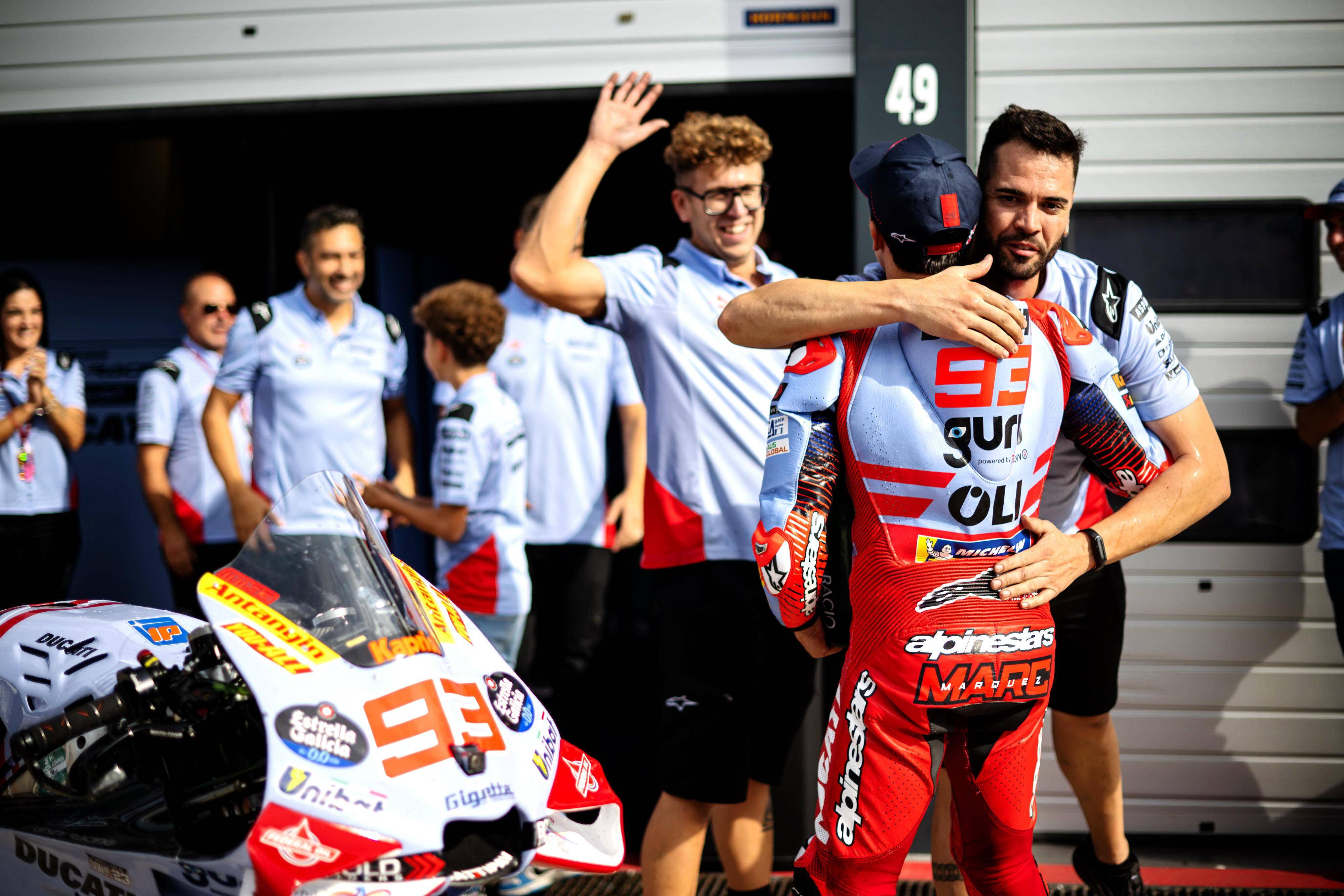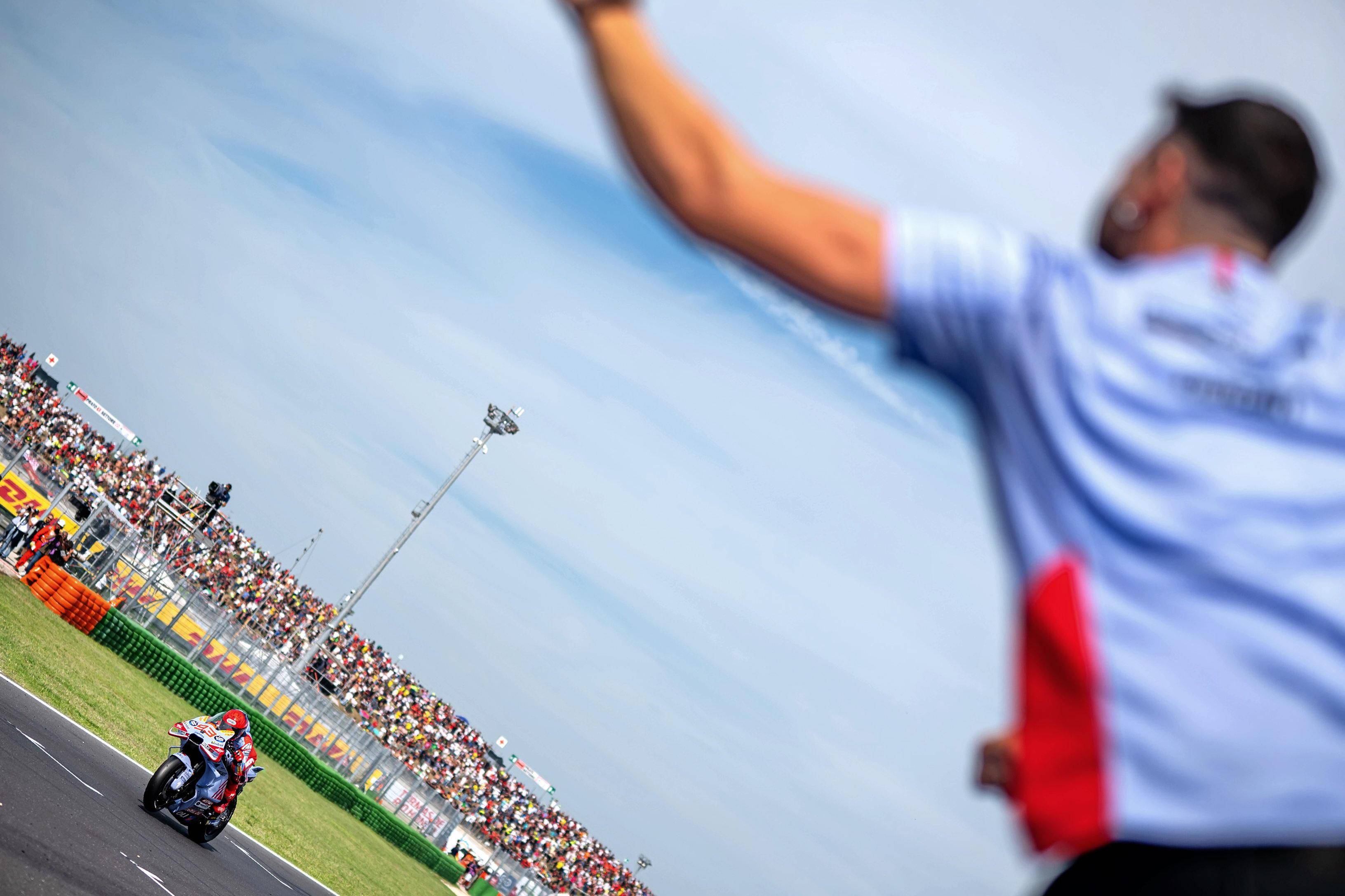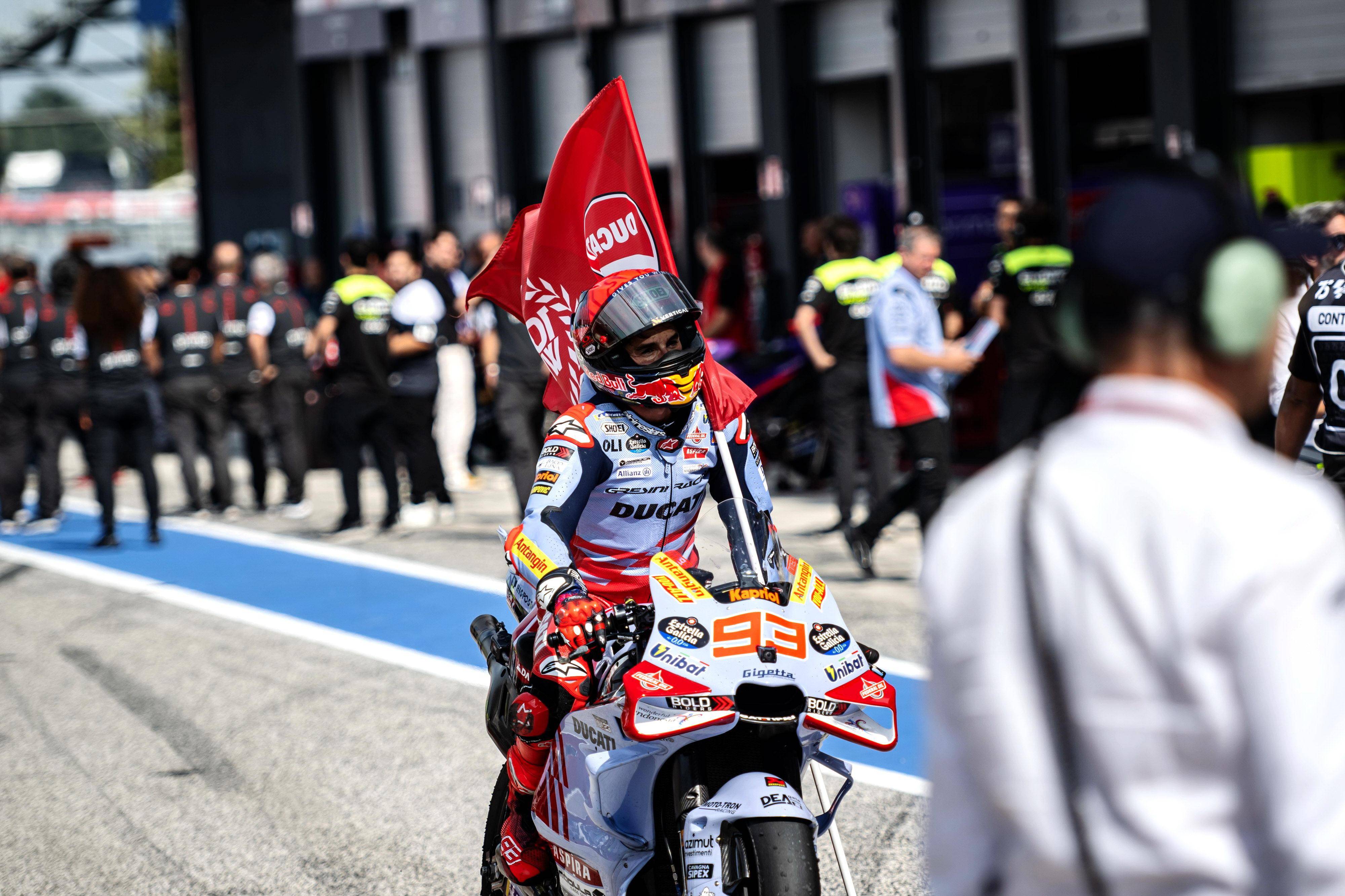 比賽結(jié)束后,馬昆斯表示,“ 讓我們享受這個(gè)領(lǐng)獎(jiǎng)臺(tái)吧、盡管我們的速度在今天應(yīng)該是第四名的。我本可以冒更多的風(fēng)險(xiǎn),然后以 3 秒的差距獲得第四,或者控制我的速度,以 8 秒的成績(jī)獲得第四,對(duì)手(指當(dāng)時(shí)跑在第三位、但在比賽后段摔車的巴納亞 Francesco Bagnaia)的失誤肯定對(duì)我們有幫助,讓我獲得了 16 分,(接下來(lái)我們)期待著下一站的印尼。”