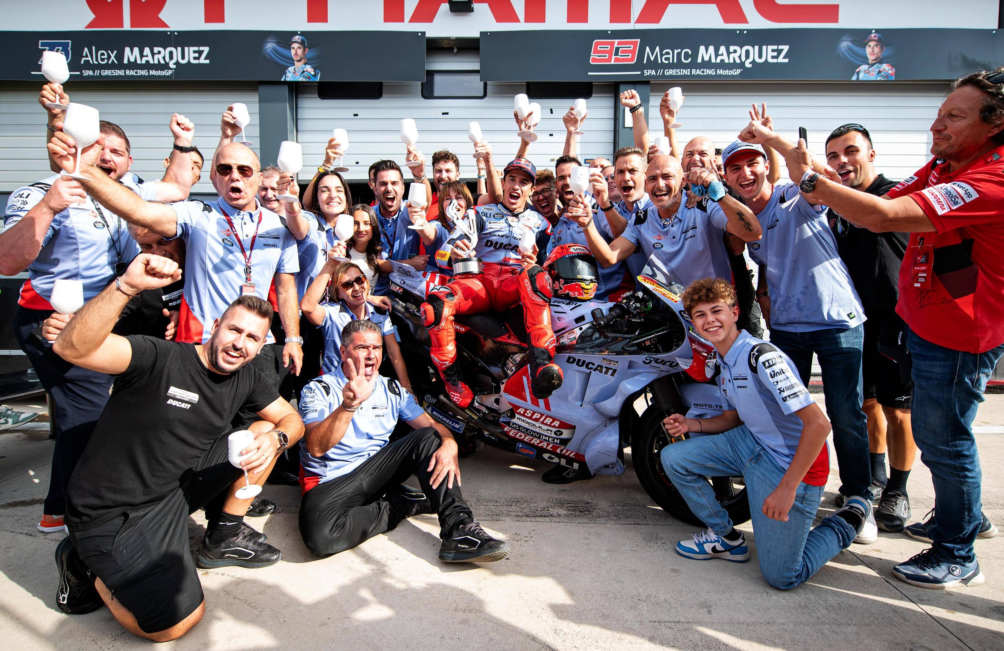福建友力企業(yè) YOU-ALL (福建省友力化油器有限公司)所支持的吉斯尼 MotoGP 車隊(duì)(Gresini MotoGP Team),2024 賽季的出場(chǎng)陣容是來(lái)自西班牙的兄弟組合:駕駛 93 號(hào)車的馬昆斯(Marc Marquez),以及駕駛 73 號(hào)車的小馬昆斯(Alex Marquez)。