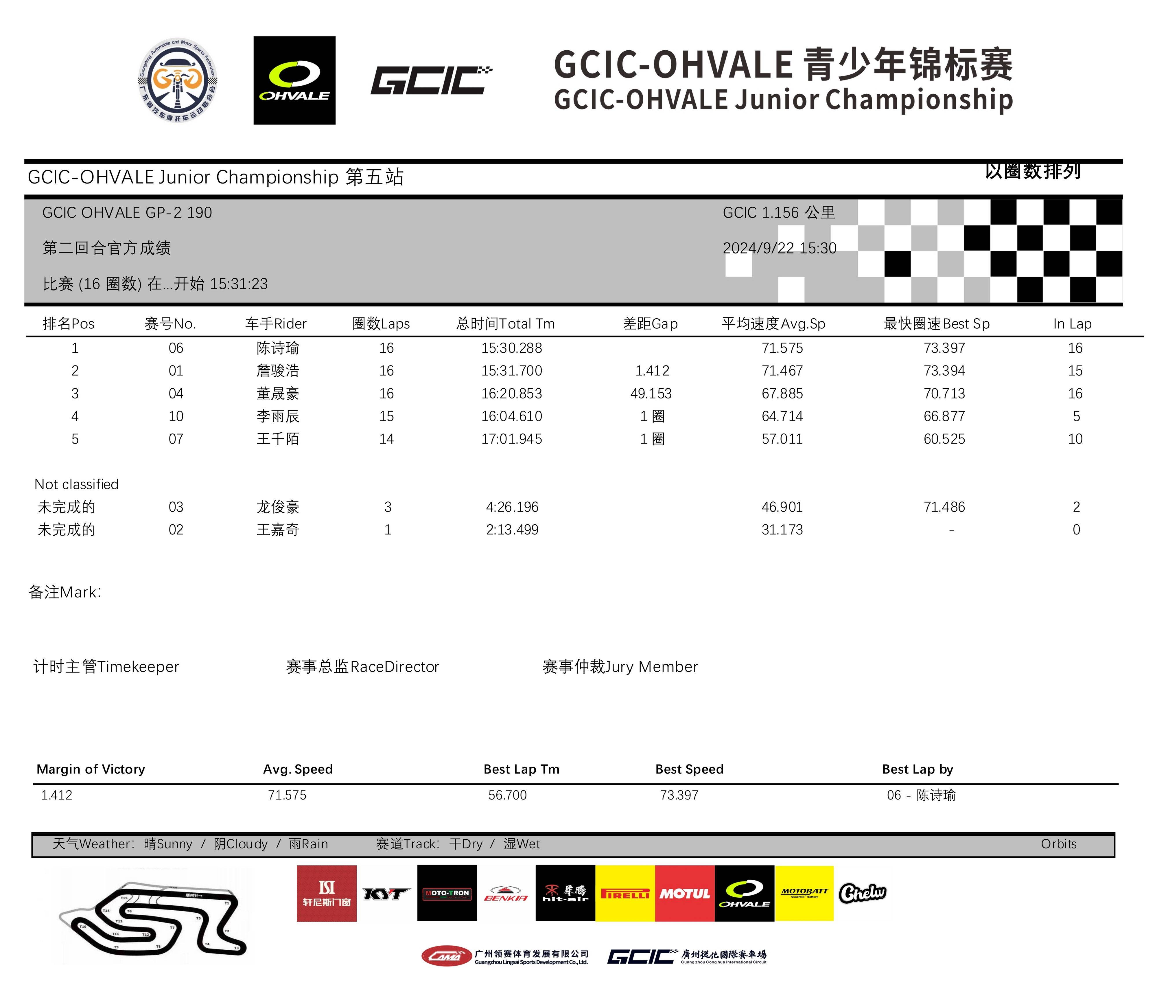 2、Ohvale GP-0 110 賽道體驗(yàn)組(四檔):1 分 01.236 秒(陳司航);