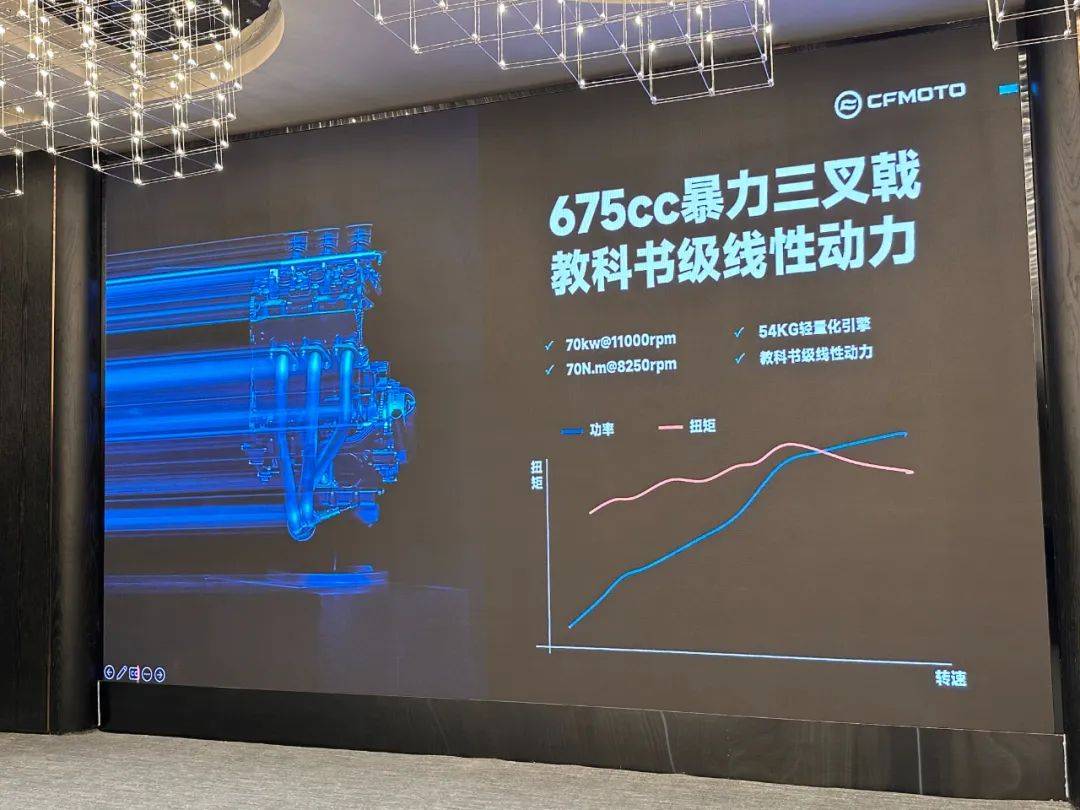 動(dòng)力方面675SR-R搭載的這臺(tái)三缸引擎,實(shí)際排氣量674cc,最大功率70kw/11000rpm,最大扭矩70N.m/8250rpm,熟悉這臺(tái)引擎參數(shù)的朋友,對(duì)比450SR可以發(fā)現(xiàn),(72/55.2)缸徑和行程完全一致,通過自研,春風(fēng)將最大馬力做到了95匹,按照三缸引擎的動(dòng)力特性,兼顧了中低轉(zhuǎn)的扭矩輸出,同時(shí)又融合了四缸引擎的高轉(zhuǎn)延展性,這是其顯著的特性。本次試駕車的斷油轉(zhuǎn)速約為11500轉(zhuǎn),市售車會(huì)調(diào)整到12300轉(zhuǎn)。極速方面本次我在賽道實(shí)測(cè)5檔10000rpm左右,表顯極速為201km/h,官宣極速為230km/h,這個(gè)動(dòng)力水準(zhǔn)應(yīng)對(duì)進(jìn)階車手,綽綽有余。從動(dòng)力曲線可以看出,675SR-R的動(dòng)力很線性,在賽道試駕過程中可以很清晰地感受到,車輛在3000轉(zhuǎn)就有明顯的加速感,完全沒有四缸機(jī)的那種低轉(zhuǎn)虛弱感,強(qiáng)勁加速一直持續(xù)到10000轉(zhuǎn)紅區(qū),動(dòng)力源源不斷的出現(xiàn),給人的加速體感強(qiáng)烈,三缸引擎魅力無限,好玩又過癮。它的強(qiáng)勁低扭帶來很高的寬容度,5檔二三十的低速騎行,依然不拖檔,日常使用會(huì)更方便,可以大幅減少降檔頻率。同時(shí)在高轉(zhuǎn)的動(dòng)力延展性上,很接近同級(jí)四缸機(jī),具體說來就是8千-1萬轉(zhuǎn)的高轉(zhuǎn)區(qū),出力只比國(guó)產(chǎn)同級(jí)四缸仿賽稍弱一成,到1萬轉(zhuǎn)之后才能感覺到出力明顯衰減。(市售版斷油轉(zhuǎn)速將提高到12300轉(zhuǎn),萬轉(zhuǎn)后動(dòng)力延展性應(yīng)有好轉(zhuǎn))但你要知道,五檔一萬轉(zhuǎn)速度就到200、六檔一萬轉(zhuǎn)到220以上,非專業(yè)車手、專業(yè)賽道,根本用不到。這就是三缸機(jī)的天然優(yōu)勢(shì),被675SR發(fā)揮得淋漓盡致。關(guān)于震動(dòng),講真在賽道駕駛中還真沒感受到明顯的震感,即便是2檔10000轉(zhuǎn)左右的低檔高轉(zhuǎn),此時(shí)整車也沒有高頻震感,也沒有多余的碎震傳遞,整車的運(yùn)行質(zhì)感很高,震動(dòng)抑制是比肩大貿(mào)車型的高水準(zhǔn)。