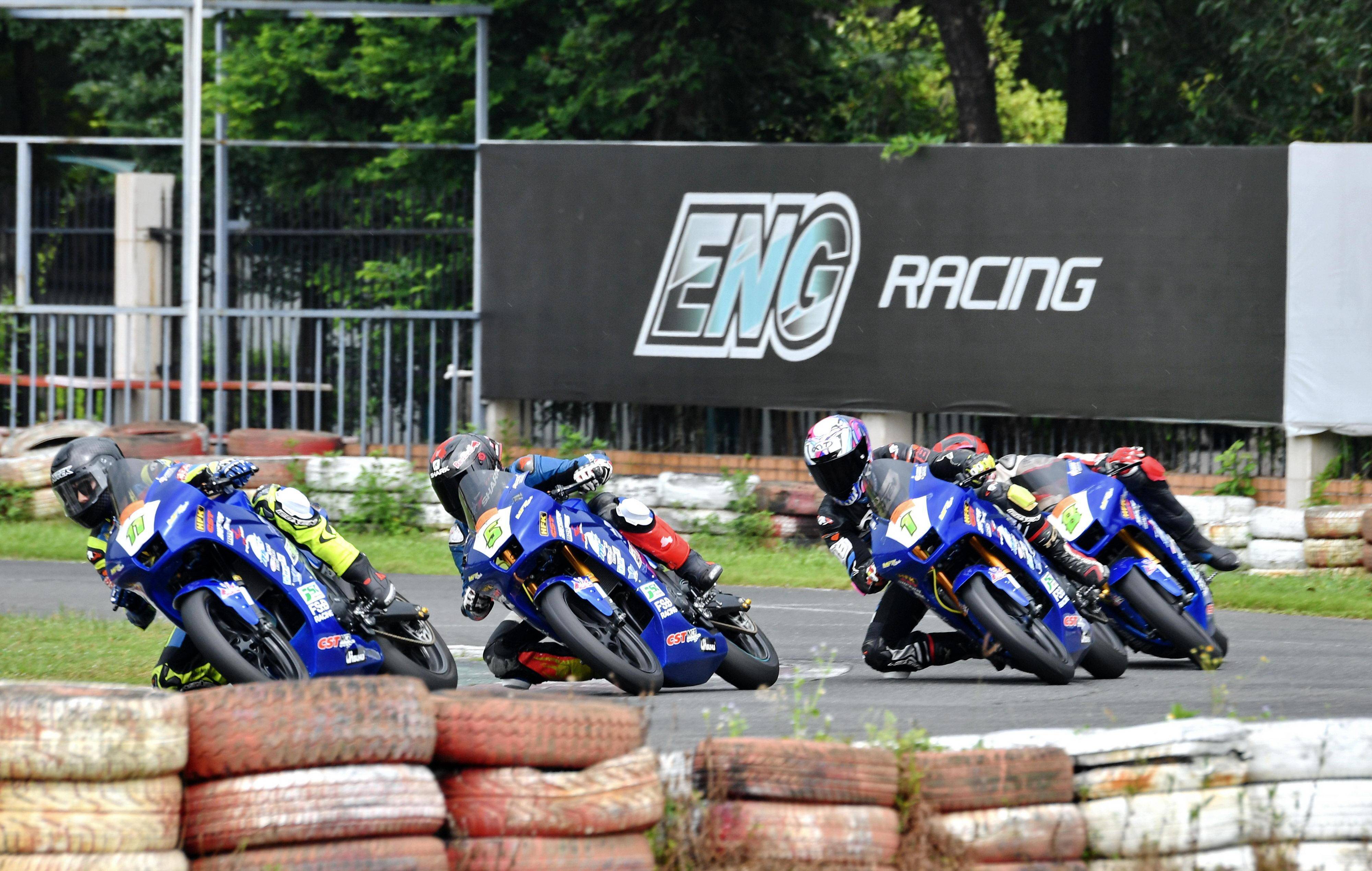 第二節(jié)比賽在半干半濕的賽道環(huán)境下拉開帷幕。從上半場比賽帶試探性的 “ 各守本分 ”、到下半場的火力全開,胡通明、林徐龍、林仁榮、曹磊,四位車手為觀眾帶來了扣人心弦的較量。最終,胡通明以微弱的優(yōu)勢、拿下了第二節(jié)比賽的冠軍,林徐龍、曹磊分別獲得了亞軍、季軍。