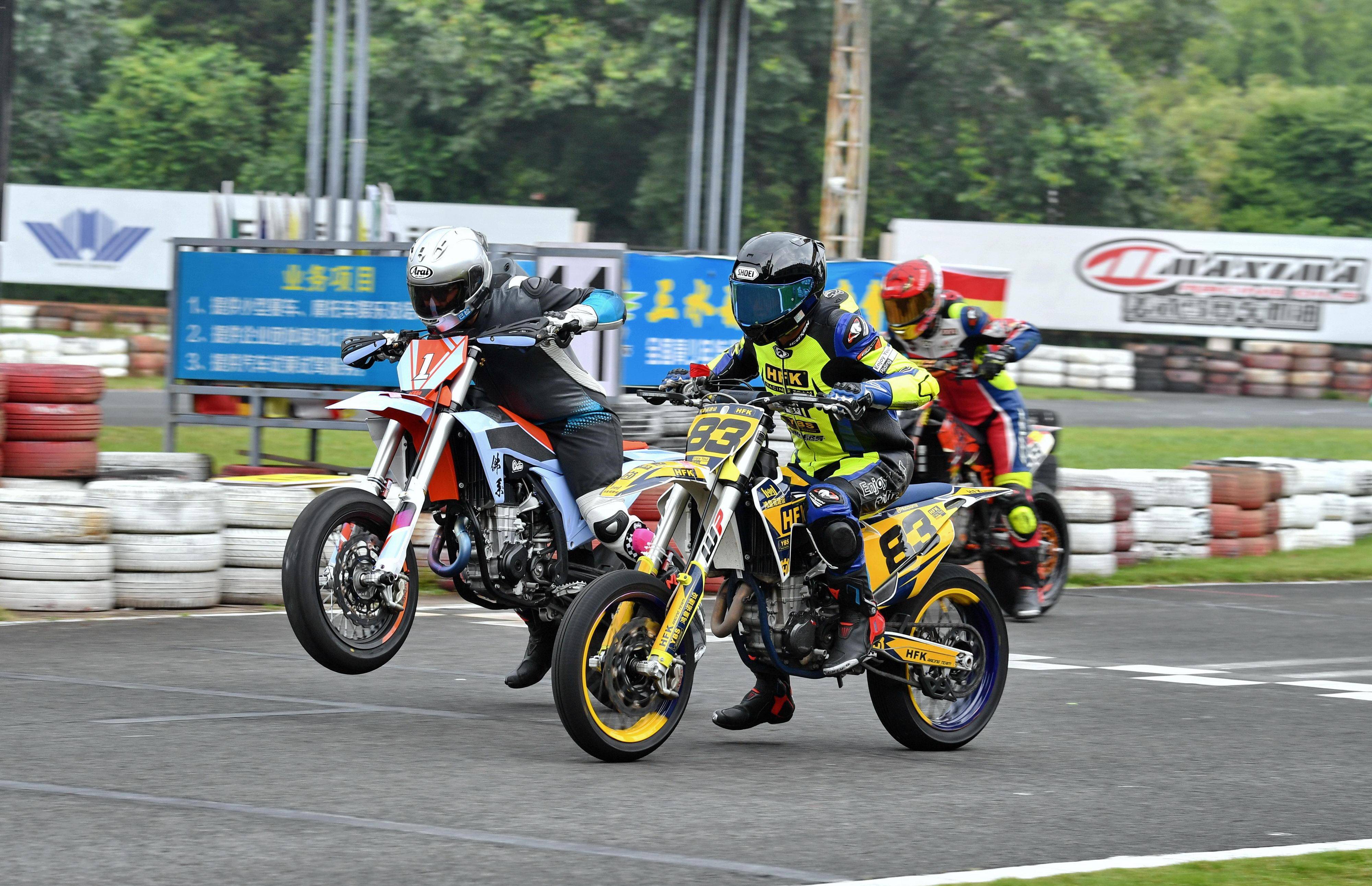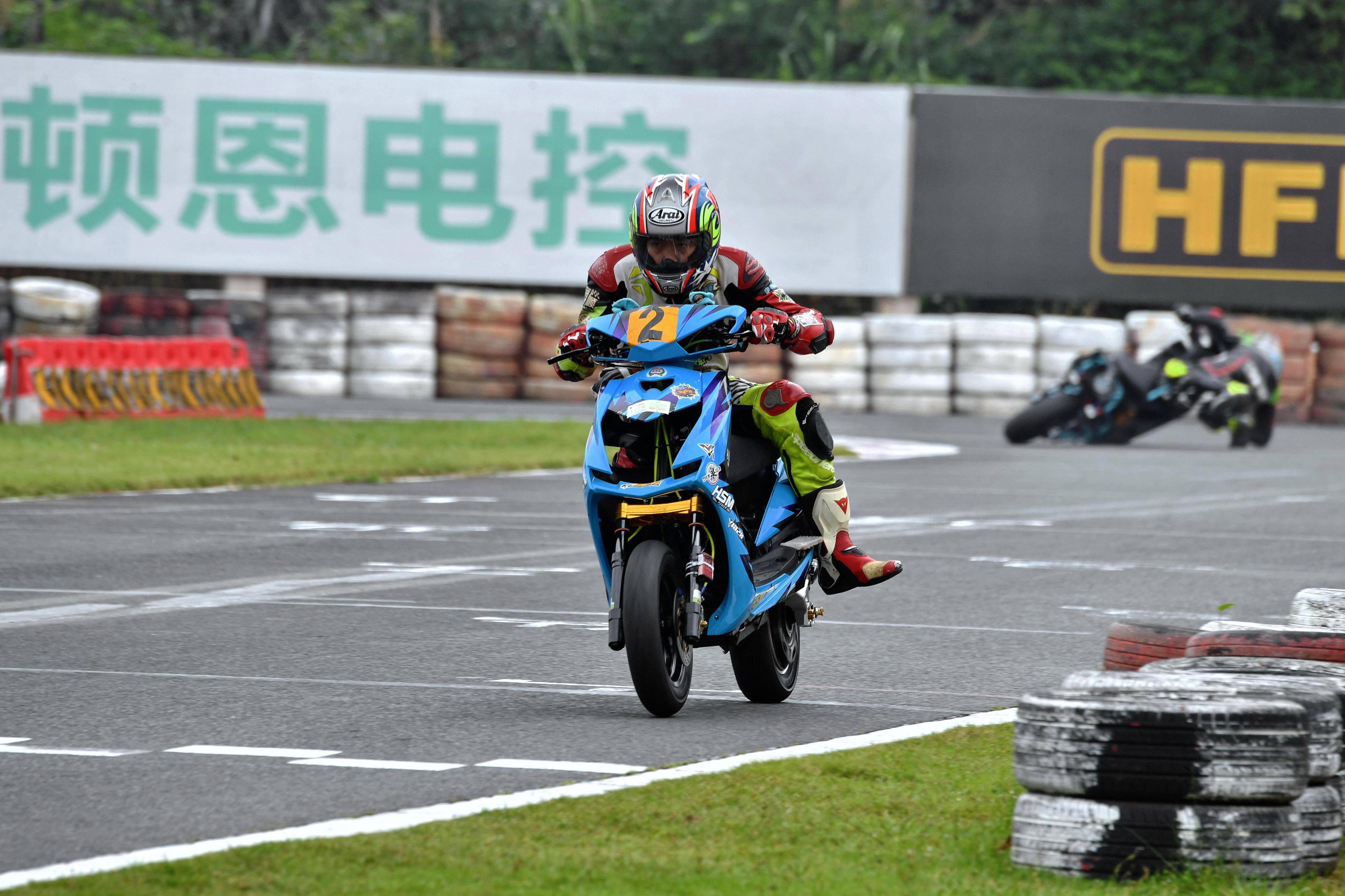 Supermoto 滑胎公開組的兩節(jié)比賽、都有著峰回路轉的戰(zhàn)況,駕駛 83 號車的李亞文奪得了第一節(jié)比賽的冠軍,爭奪冠軍過程中曾摔了一跤、1 號車的黃家輝獲得了亞軍,59 號車的何志敏拿到了季軍。