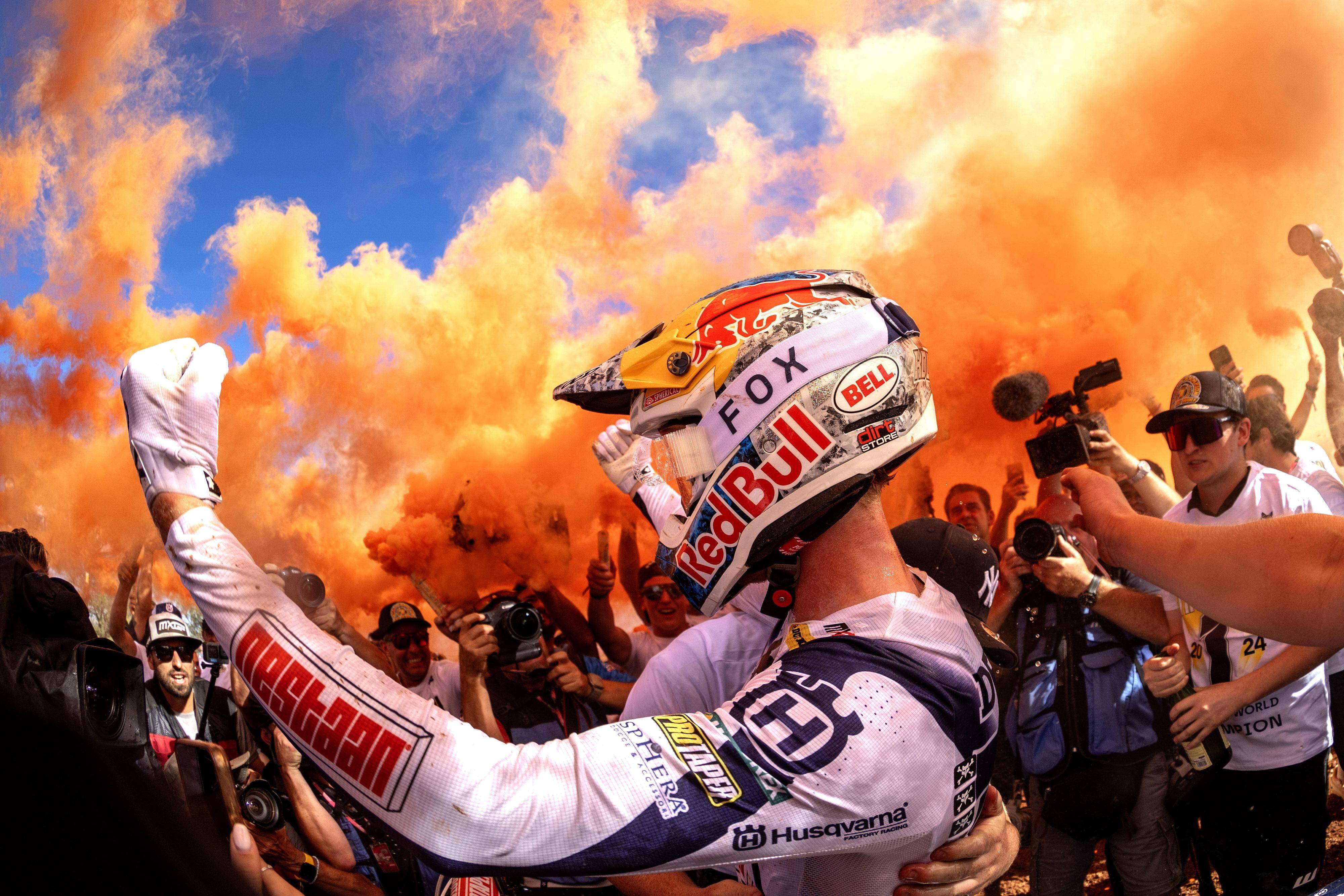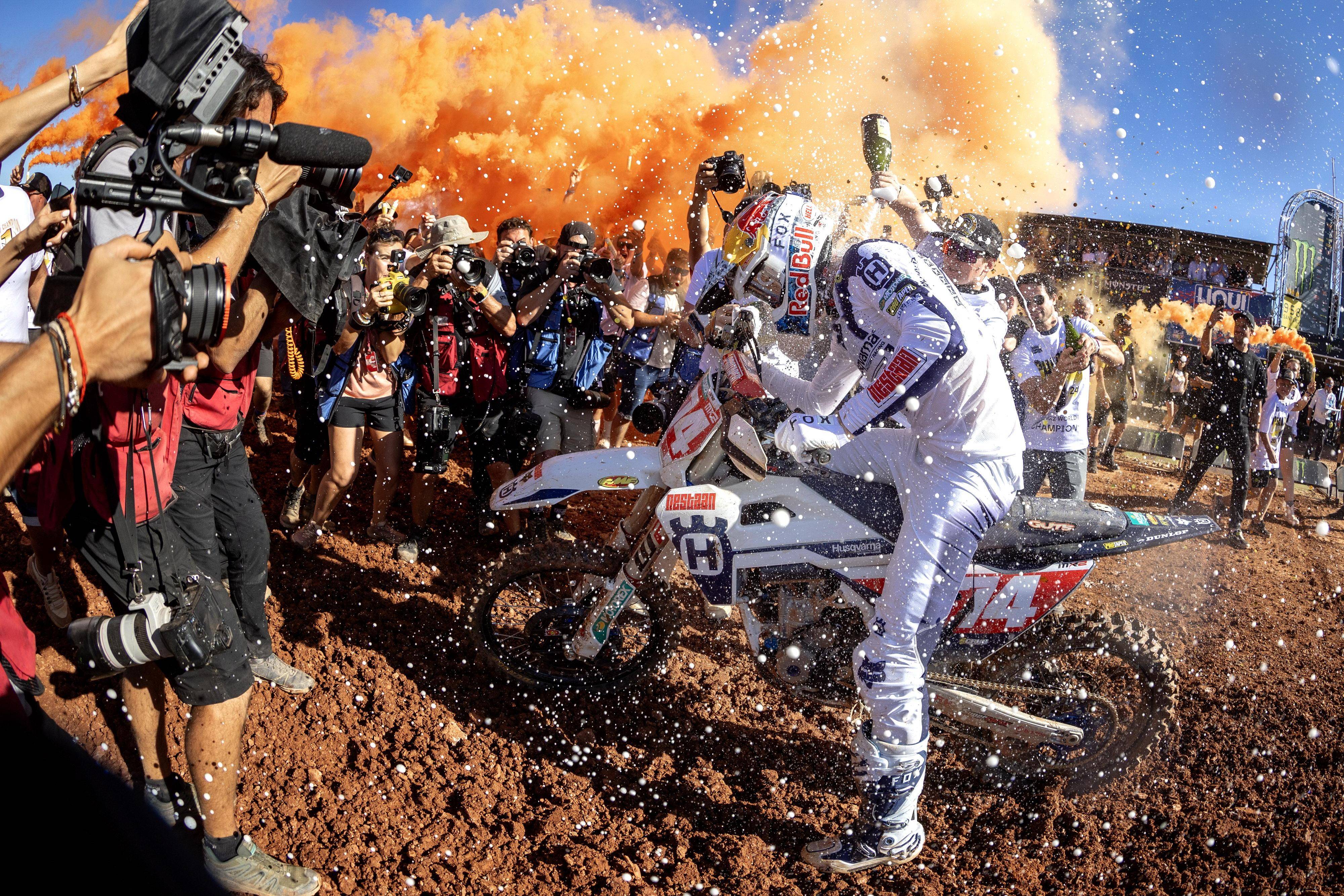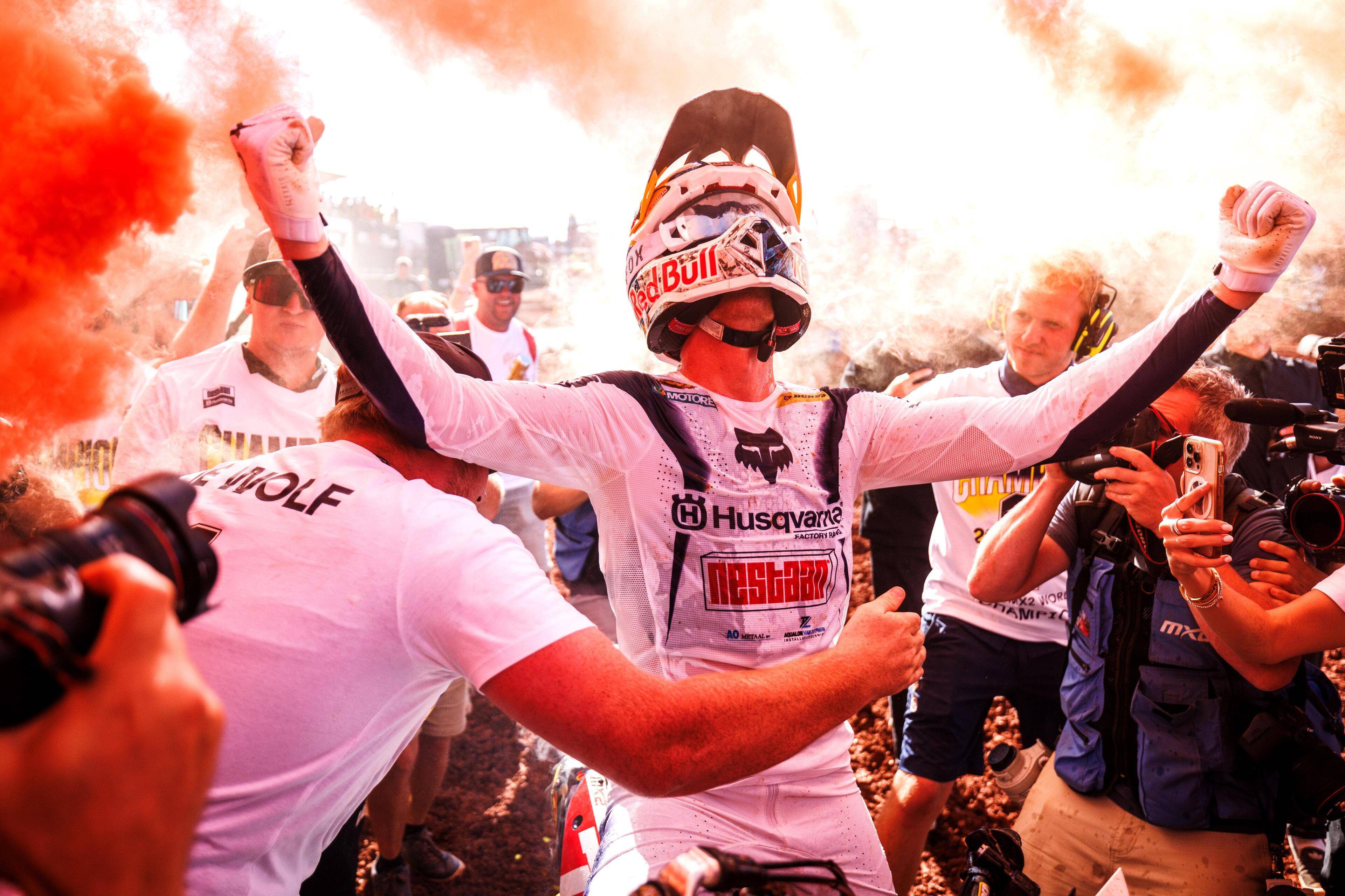現(xiàn)年二十歲的沃夫,在 2021 年開啟他在 FIM MXGP 世界越野錦標賽的職業(yè)生涯(MX2 級別),今年二十個分站、總共 40 節(jié)的比賽里,他累計拿下十一個冠軍、共 29 次登上頒獎臺。而九月 29 日、最終拿下職業(yè)生涯首個世界冠軍頭銜,正好是他的二十歲生日。