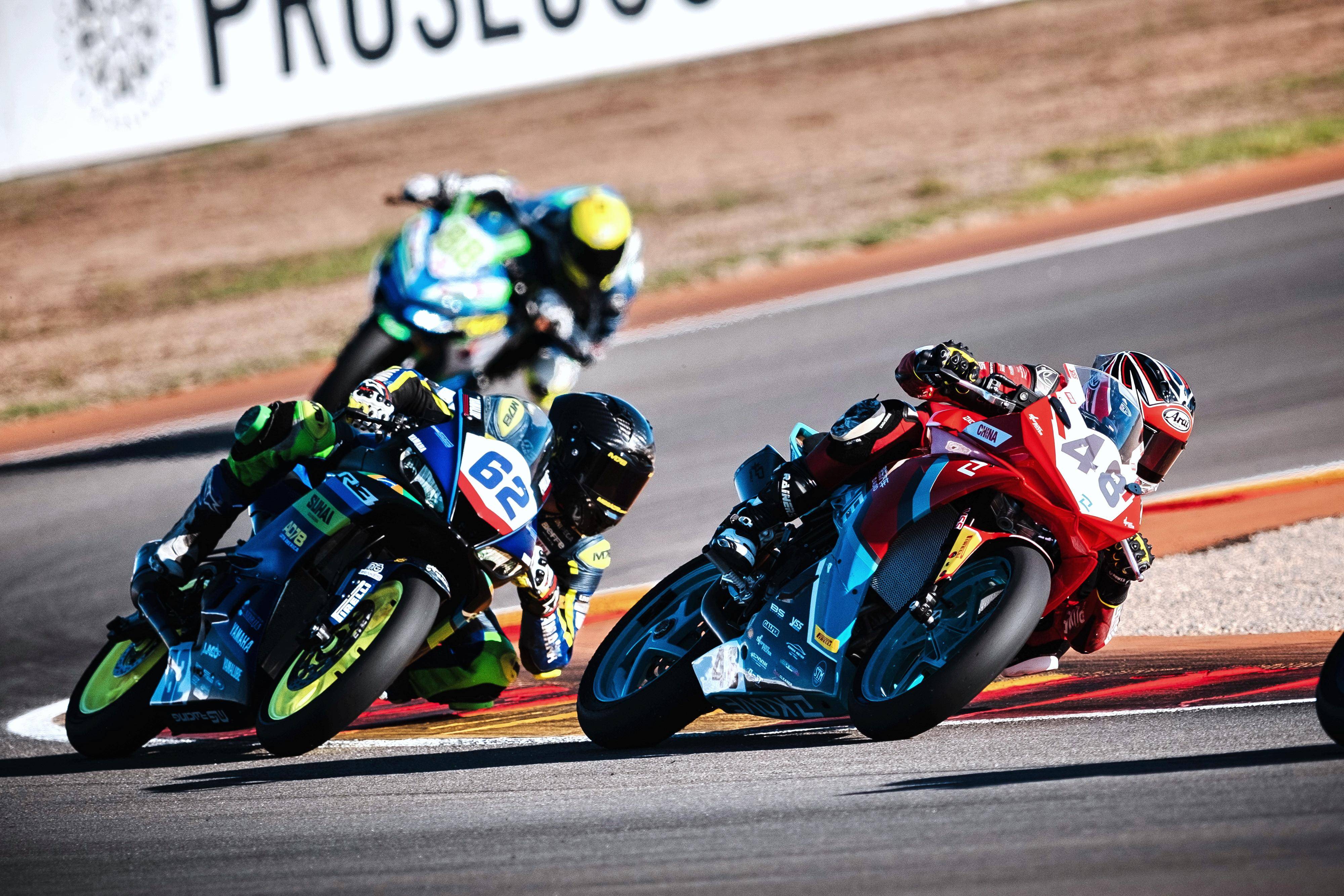 WorldSSP300 級(jí)別的兩節(jié)比賽,都是精彩且激烈的搏斗,讓觀眾們看得拍手稱道、心跳加速。第一節(jié)比賽,J. 加西亞全程都在領(lǐng)先集團(tuán)里,并多次領(lǐng)跑車群;最后時(shí)刻的肉搏戰(zhàn),四輛賽車幾乎同時(shí)沖線,比賽最終需要依賴高速攝影機(jī)去判斷名次,J. 加西亞最后奪得了亞軍,與冠軍擦身而過、相差僅僅只有 0.01 秒。而 M. 加西亞在跑完兩次長圈之后,一度處于第三位的他,位置掉到了第二十四,他最終以二十位完賽。