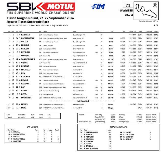 FIM WorldSBK 超級(jí)跑車世界錦標(biāo)賽(FIM Superbike World Championship)2024 賽季第十站的比賽,九月 27 - 29 日在西班牙的阿拉貢(Aragon)賽車場(chǎng)舉行。