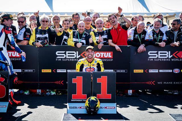 憑借著強(qiáng)勁的速度,恩諾尼在激烈的較量中取得了最后的勝利,拿到了在 WorldSBK 的首個(gè)冠軍。與領(lǐng)先者相距大約 1 秒,另外三位車手幾乎同時(shí)沖線,復(fù)出的拉格里奧盧以微弱的優(yōu)勢(shì)奪得了第二,與冠軍相距只有 0.845 秒。后面,格洛夫和捌弟分別拿到第三、第四名,稍遠(yuǎn)的佩魯奇獲得了第五。