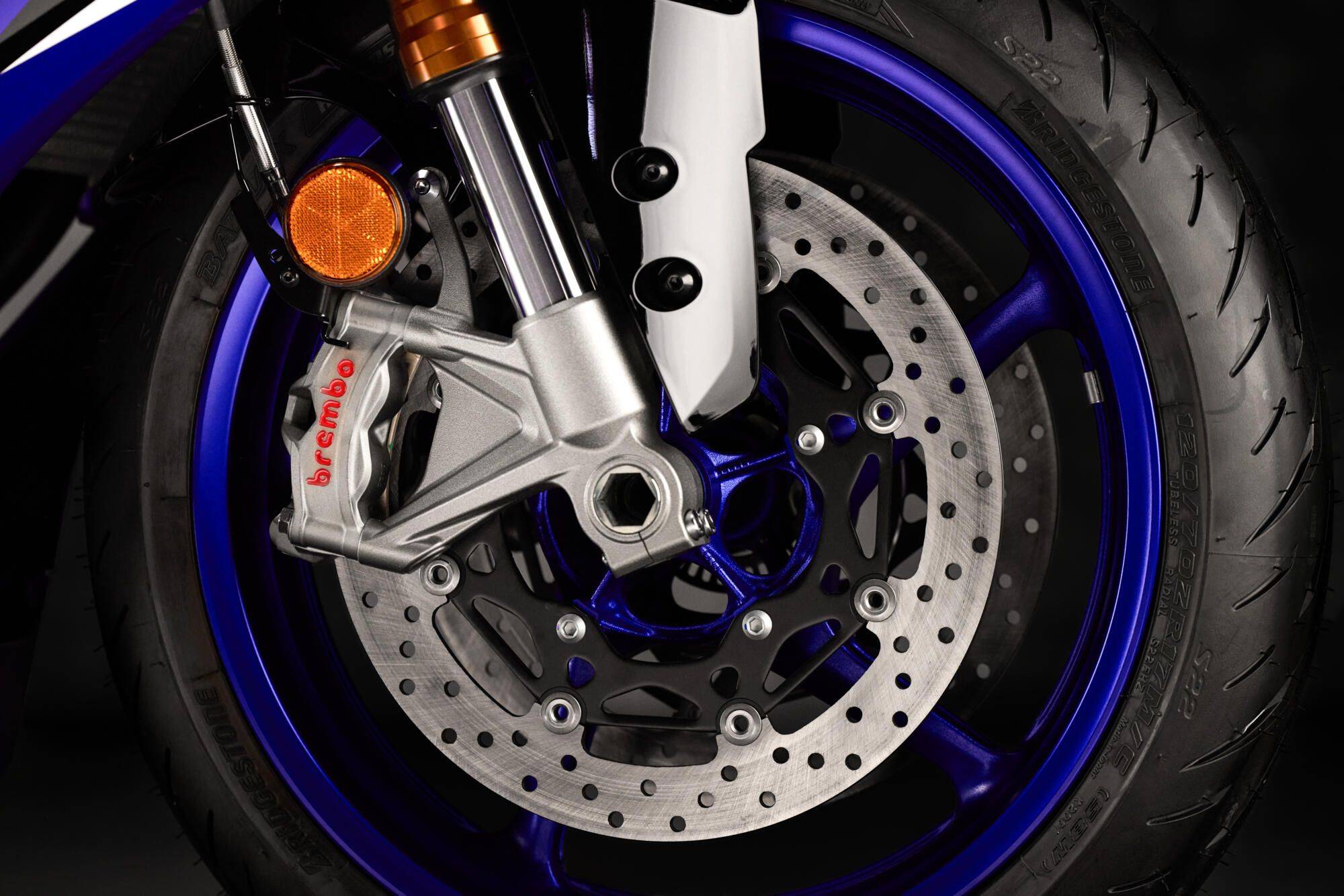 當(dāng)然,有了充足的動力,自然需要強(qiáng)大的剎車來對應(yīng),雅馬哈 為 YZF-R9 配備 Brembo Stylema 輻射卡鉗、320MM 雙碟,以及單活塞卡鉗、220MM 單碟,這將讓它的制動表現(xiàn)不輸任何一臺頂級仿賽; 懸掛方面則是搭載全可調(diào)的KYB 43MM倒立式前叉,以及同樣全可調(diào)的KYB多連桿單槍后避震。