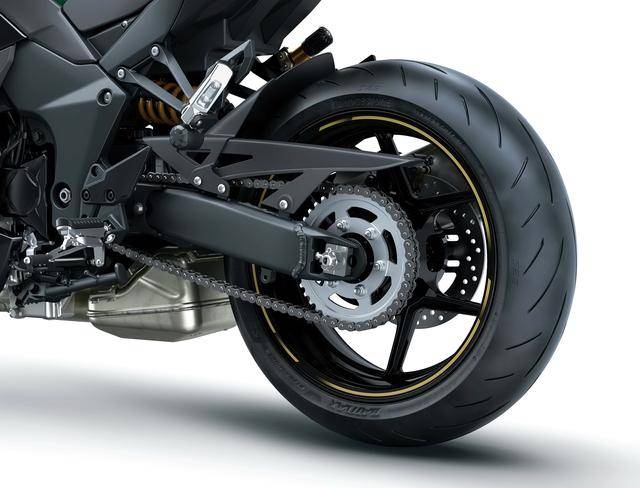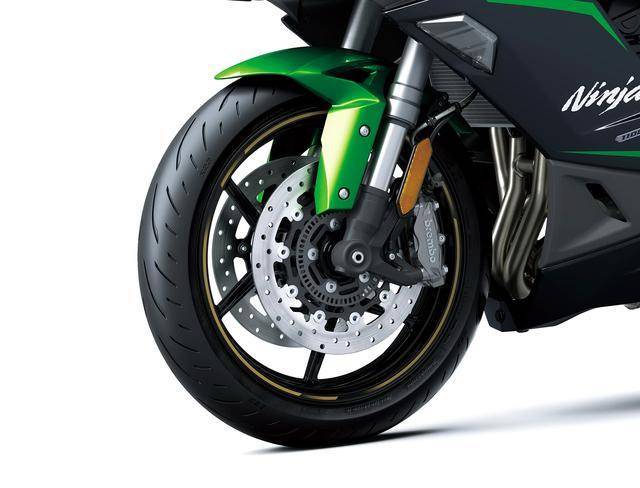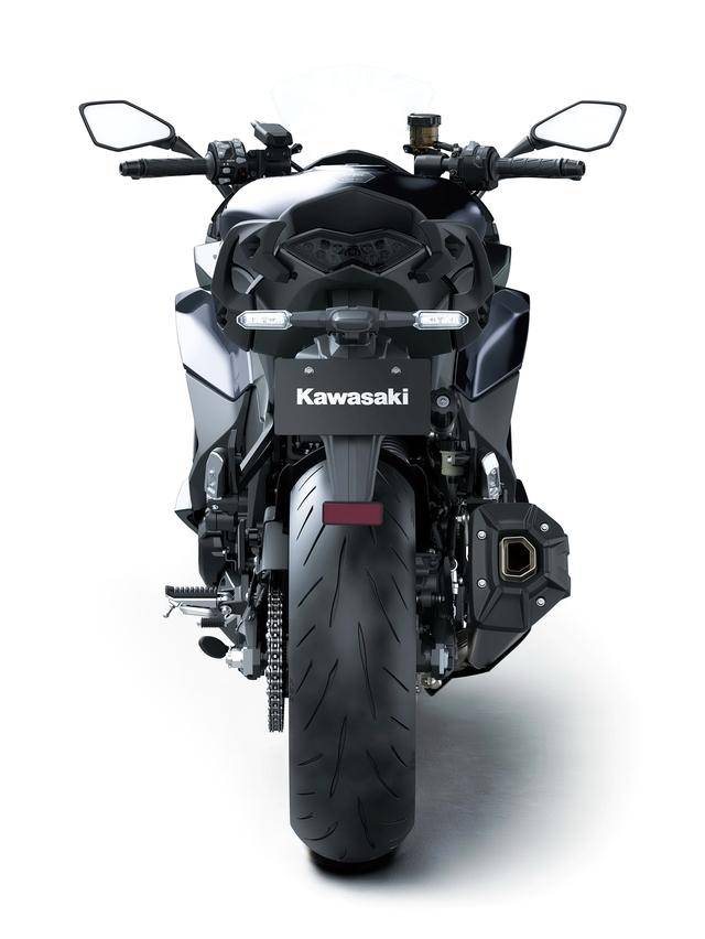 車體方面,沿用了現(xiàn)有的鋁合金制雙翼樑式的車架,叉芯口徑為 41 mm、行程 120 mm 的倒立式前叉,行程為 141 mm 的后減震(現(xiàn)行的 Ninja 1000SX 為 144 mm);數(shù)字式的儀表板,更大直徑的(260 mm vs 250 mm)、下置式安裝的后剎車卡鉗,車把的左側(cè)增加了 USB-C 插口,新的 Bridgestone 普利司通 Battlax S23 配套輪胎(現(xiàn)行的 2024 Ninja 1000SX 標配普利司通 Battlax S23 的輪胎)等。