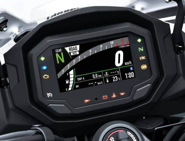 電子輔助控制系統(tǒng)方面,標配了可選動力輸出模式、KTRC 牽引力控制系統(tǒng)、KCMF 彎道管理、KIBS 智能防鎖死剎車系統(tǒng)(以感應器檢測前制動卡鉗液壓、節(jié)氣門位置、發(fā)動機轉(zhuǎn)速、離合器驅(qū)動和檔位等多個即時數(shù)據(jù),并通過 ECU 運算、控制的 ABS)、電子巡航控制等。