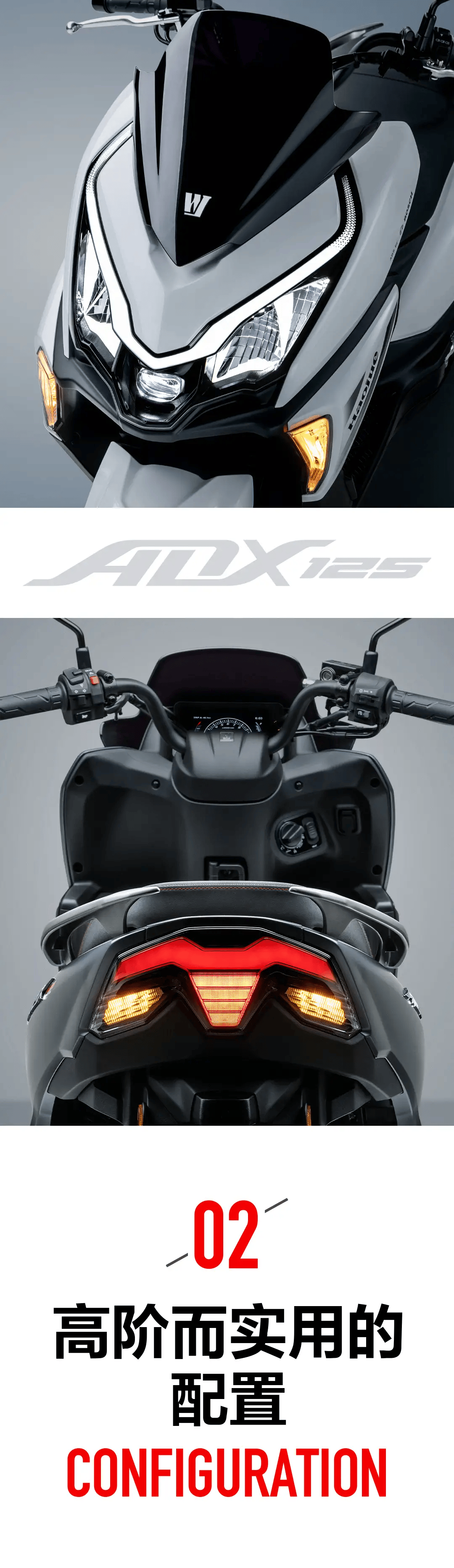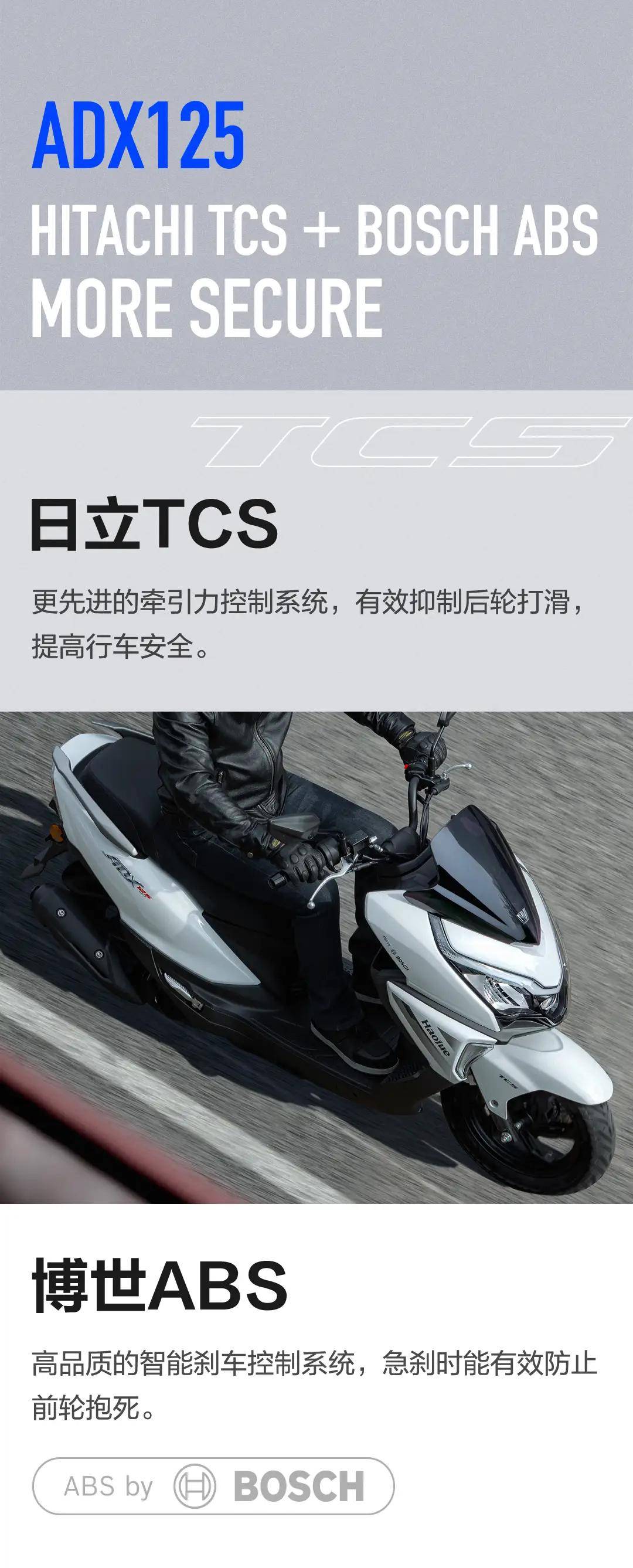 此外,豪爵ADX125還提供了珍珠黑、 珍珠白、閃光金屬灰、啞光星際灰四種車身配色,滿足了不同消費(fèi)者的個性化需求。