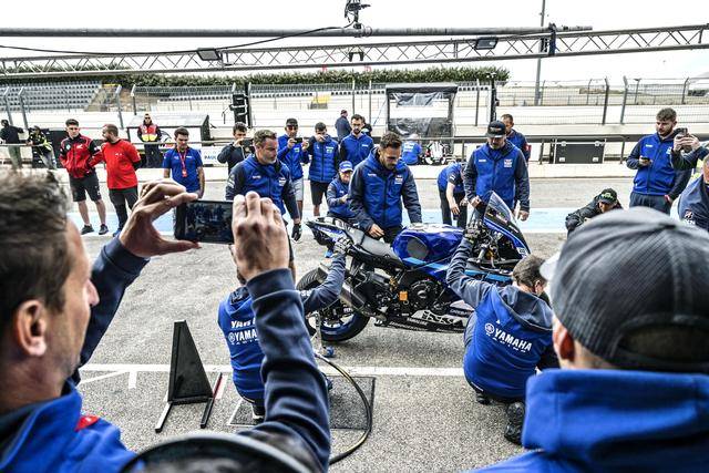 下面的圖片,以輔助賽事形式、在 2024 法國波爾多二十四小時耐力賽起跑前舉行的 Yamaha R7 杯歐洲總決賽(Yamaha R7 European SuperFinale)。比賽現場,世界耐力賽去年的世界冠軍、1 號車的 YART 奧地利 Yamaha 車隊,還為參賽者們演示了耐力賽里的快速換胎。