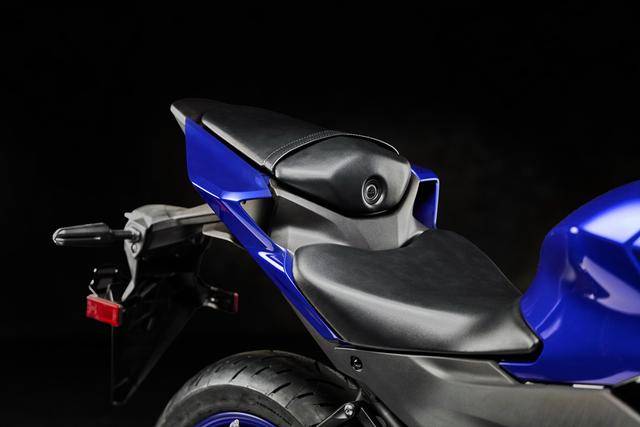 3、以易于操作和控制作為目標,2025 YZF-R3 的車身經(jīng)過重新設計,采用了更薄的鞍座(比 2024 款薄了 6 mm)和鞍座兩邊的側殼(左右兩側各向內(nèi)縮進了 13 mm),盡管座位高度維持在 780 mm,但改善了腳部到地面的接觸范圍;