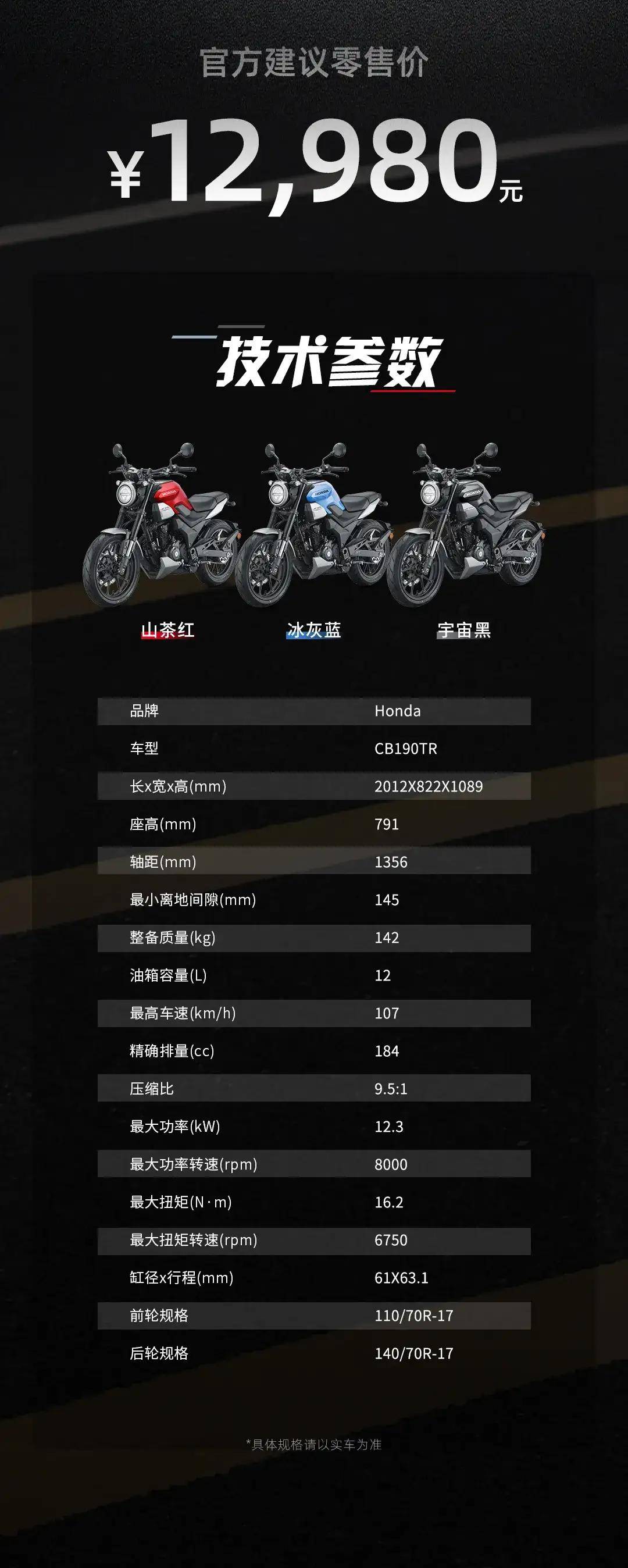 12980元!新大洲本田發(fā)布運動復古CB190TR