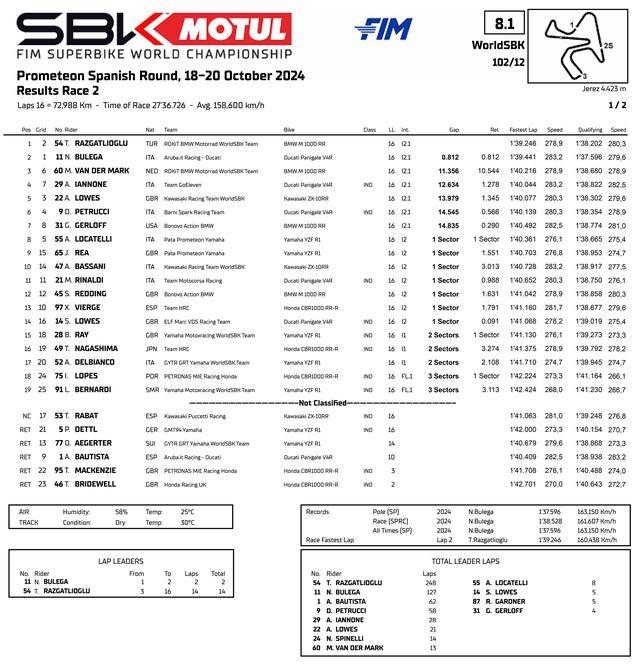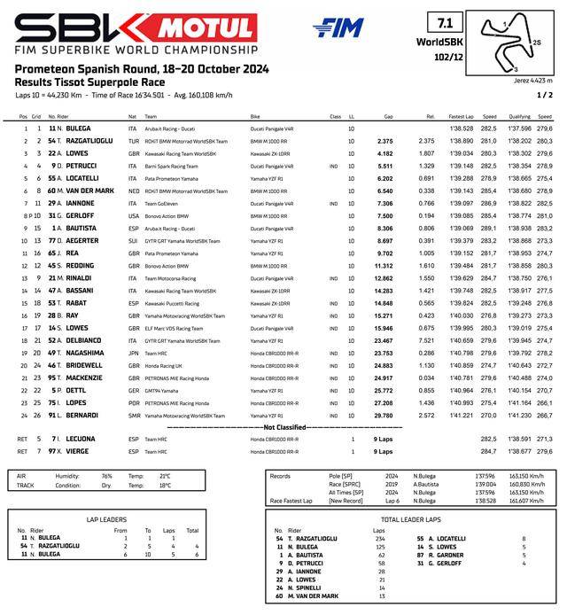 FIM WorldSBK 超級(jí)跑車世界錦標(biāo)賽(FIM Superbike World Championship)2024 賽季最后一站(第十二站)的比賽,十月 18 - 20 日在西班牙的捷雷斯(Jerez)賽車場(chǎng)舉行。