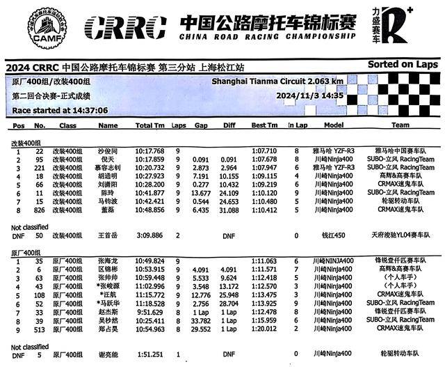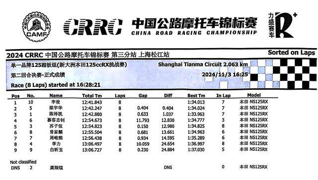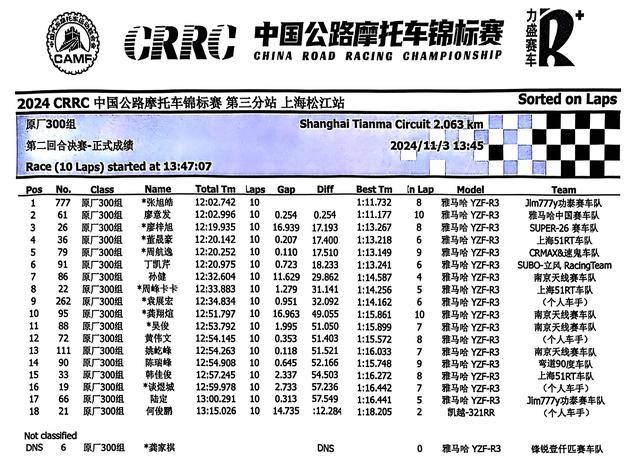 2024 CRRC 中國公路摩托車錦標賽第三站、上海:賽事成績