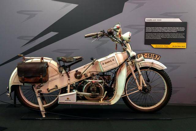 而在米蘭 Rho 展覽中心南邊閘口舉行的經(jīng)典車型小型展,里面展出了在過去 110 年里、先后在 EICMA 上出現(xiàn)過的部分車型和組件。從最初的、屬于 “ 遠古時代 ” 的燃油助力自行車,到近現(xiàn)代的超級跑車、賽車,多個具有劃時代的、或者是具有代表性技術(shù)飛躍的車型(譬如 1920 Mars 的 A20 1000、1954 Moto Guzzi 摩托固茲的 Calletto 192、1974 Benelli 貝納利搭載直列六氣缸發(fā)動機的 750 SEI、1992 Honda NR750、1994 Ducati 杜卡迪 916 等),都出現(xiàn)在這個小型展覽里面。