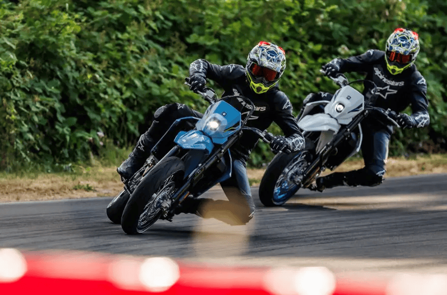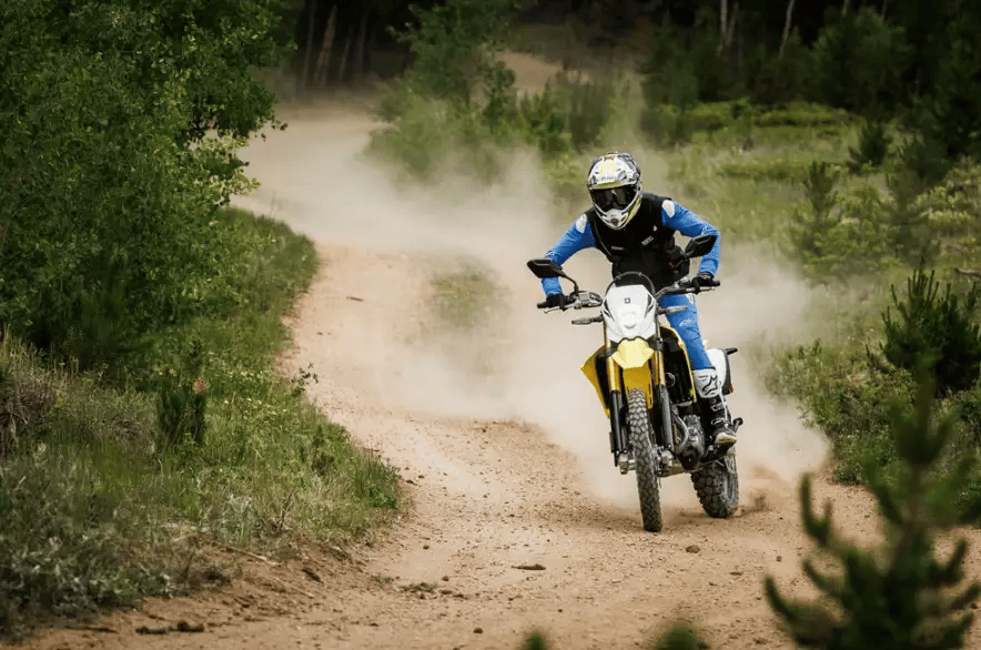 與DR-Z4S相比,DR-Z4SM則更適合街道和賽道的滑胎車型。它在保留DR-Z4S強(qiáng)大動(dòng)力的基礎(chǔ)上,對輪胎和懸掛系統(tǒng)進(jìn)行了專門的設(shè)計(jì),配備 DunlopSPORTMAX Q5A的運(yùn)動(dòng)胎,17寸輪轂,前后減震行程也分別降到260mm和277mm,前 制動(dòng)盤尺寸也更大,提供了精準(zhǔn)的制動(dòng)性能和穩(wěn)定的操控體驗(yàn)。DR-Z4SM的車身離地間隙相較于越野版的300mm縮減至260mm,座高也從920mm降至890mm,整備質(zhì)量略微增加至154kg。
