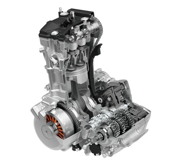 在動(dòng)力方面,DR-Z4S搭載了一臺(tái)經(jīng)過大幅升級(jí)的398mL水冷四行程DOHC 單缸 發(fā)動(dòng)機(jī),最大功率達(dá)到了28kW, 最大扭矩為37.0N·m。這款 發(fā)動(dòng)機(jī)不僅動(dòng)力強(qiáng)勁,還符合最新的Euro 5+ 排放標(biāo)準(zhǔn)。保留了上一代DR-Z400發(fā)動(dòng)機(jī)所擁有的堅(jiān)固耐用的特點(diǎn),且擁有平順且線性的動(dòng)力輸出,并在較低轉(zhuǎn)速下能提供更好的扭力輸出、高轉(zhuǎn)速反應(yīng)也更好,還優(yōu)化了油耗表現(xiàn)。