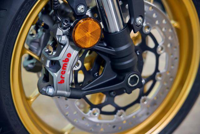 6、標(biāo)準(zhǔn)版采用 Nissin 日信的前剎車卡鉗,SP 版則采用了 Brembo布雷博的 Stylema 前剎車卡鉗;