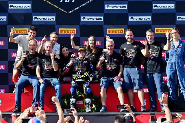 第一節(jié)比賽,赫雷拉奪得了第一、卡拉斯科拿到了第二,兩人之間的積分差距縮小到 13 分,冠軍仍懸而未決;第二節(jié)比賽,隨著赫雷拉在比賽最后階段的摔車,以第三名完賽的卡拉斯科,最終奪得了首屆 FIM WorldWCR 女子公路賽車世界錦標賽的世界冠軍 —— 這是卡拉斯科的第二個世界冠軍頭銜,她在 2018 年奪得了 WorldSSP300 級別的世界冠軍,成為了 FIM 在公路型世界大賽里(不區(qū)分男性和女性運動員)、第一位(也是目前唯一一位)拿到世界冠軍頭銜的女車手。
