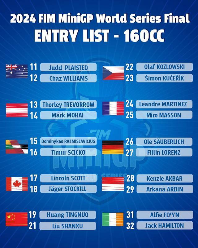 2024 年的總決賽,創(chuàng)下自 2021 年以來有紀(jì)錄的、包括中國在內(nèi)的二十一個國際摩聯(lián)會員單位舉辦這項比賽,其中 160 組有多達(dá) 41 位參賽者,而 190 組則有 33 位參賽者。而 FIM MiniGP 年度總決賽今年的部分規(guī)則如下: