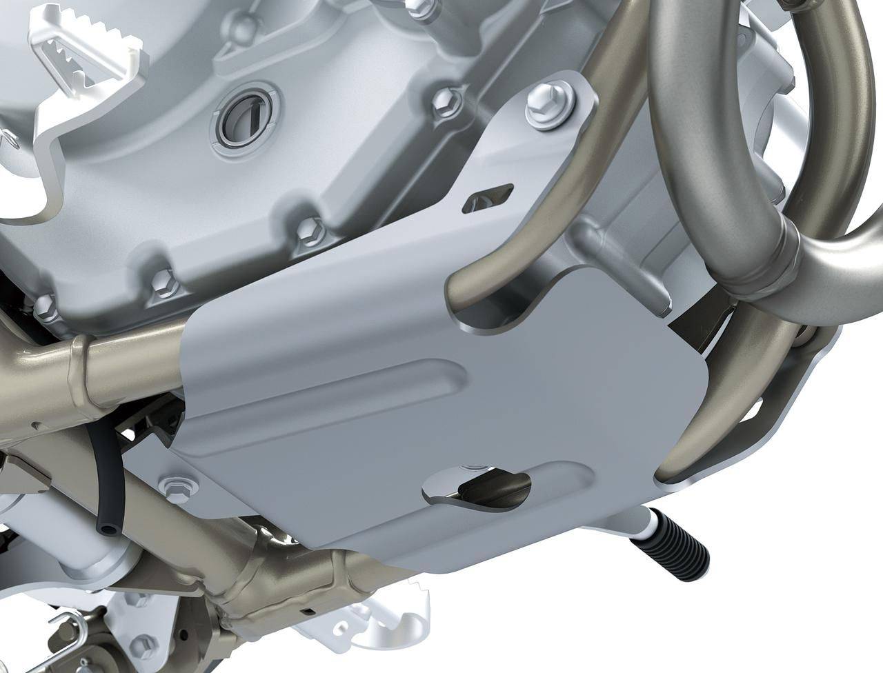 KLX230 Sherpa配備有握把護(hù)弓、鋁制下護(hù)板等強(qiáng)化越野性能