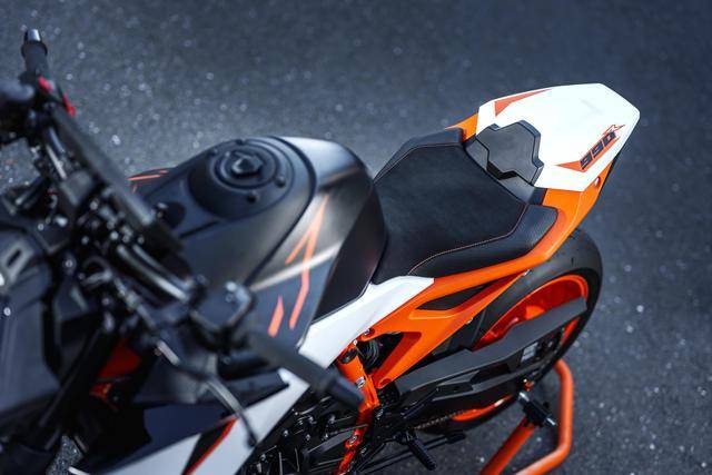 5、標(biāo)準(zhǔn)狀態(tài)下的 2025 款 990 Duke R 是單座位的設(shè)計(jì),但配有后座蓋。若客戶需要將車輛修改為可以搭載乘客的狀態(tài),則需要額外選購后座乘客鞍座和腳踏;