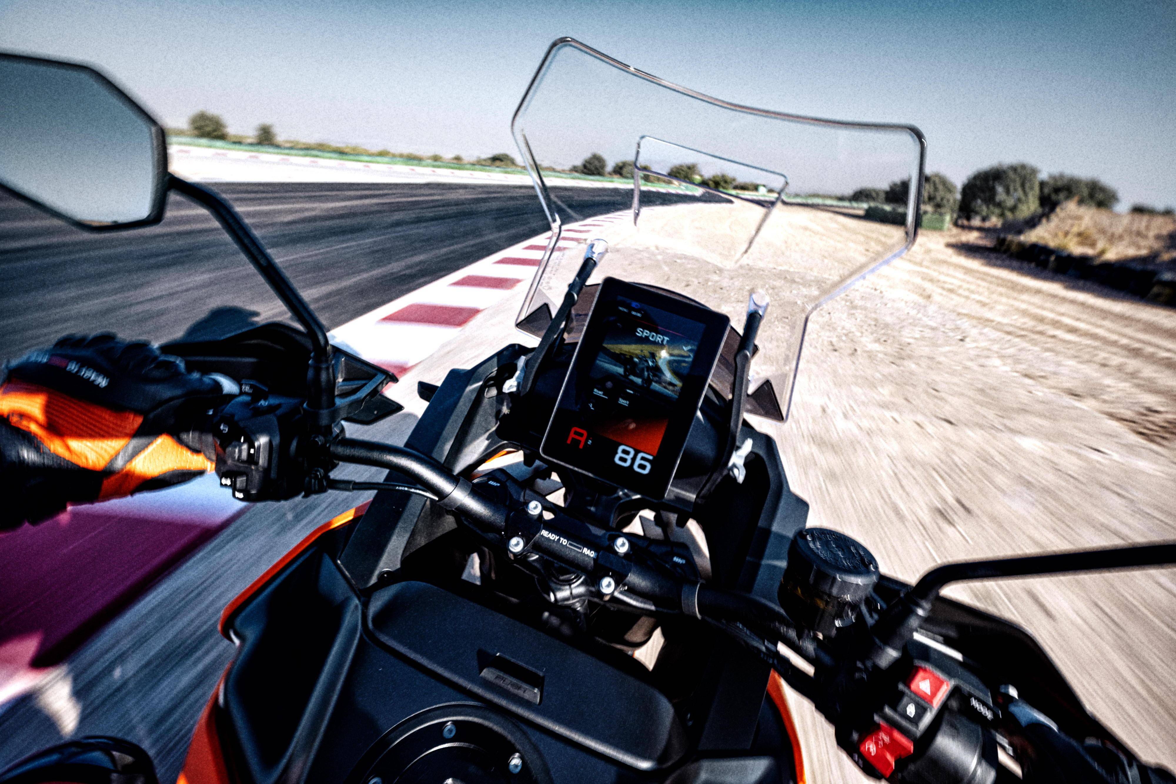 車(chē)體采用一副鋼制的車(chē)架,WP 配套的新型電子感應(yīng)半主動(dòng)控制前后懸掛系統(tǒng),全新的車(chē)身設(shè)計(jì)、采用了家族臉譜化外觀(guān)的 LED 前大燈,新的人體工程學(xué)設(shè)計(jì)以改善操控的穩(wěn)定性,加寬的腳踏、位置被進(jìn)一步降低以提高舒適性;全新的 8 英寸 TFT 全彩色數(shù)字式儀表板(V80),采用了觸控感應(yīng)技術(shù),即使是戴著較厚的冬季手套、也能進(jìn)行操作;前后 17 英寸直徑的車(chē)輪,標(biāo)配了 Dunlop 的公路運(yùn)動(dòng)型輪胎。