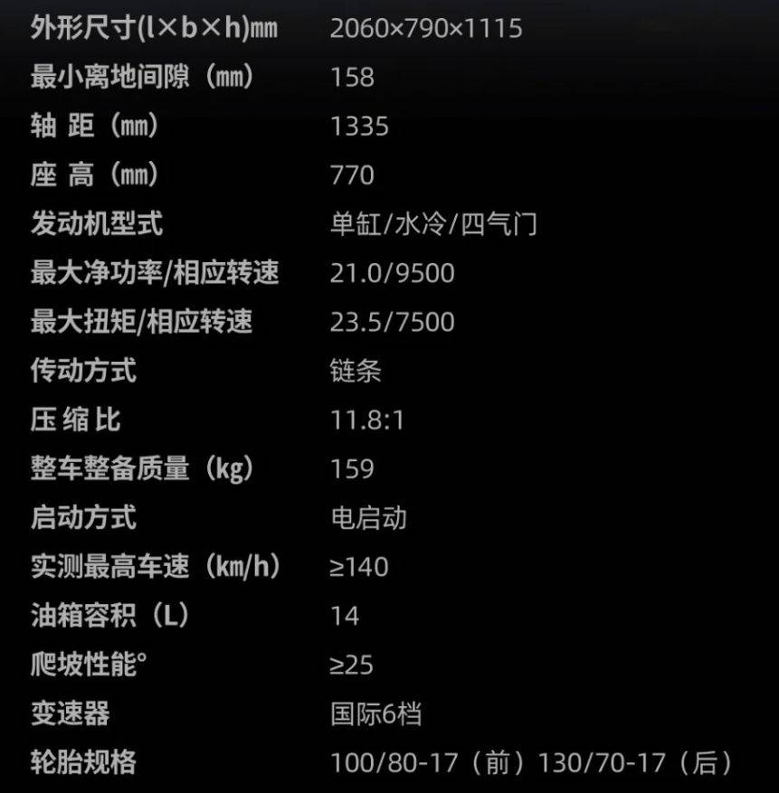2024的重慶國(guó)際博覽會(huì)上,力帆亮相了自家的最新仿賽-KPR250,12999元的價(jià)格在250級(jí)別中也是相當(dāng)有性價(jià)比的存在,對(duì)于入門級(jí)市場(chǎng)來(lái)看,又新增了一個(gè)有極高性價(jià)比的選項(xiàng),關(guān)于這臺(tái)車的詳細(xì)信息,咱們今天來(lái)一探究竟。力帆作為重慶本土摩托車生產(chǎn)企業(yè),在摩托車工業(yè)發(fā)展中也留下過(guò)自己濃墨重彩的一筆,早年間力帆的KP150和KPR200持續(xù)參加了CRRC中國(guó)摩托車公路錦標(biāo)賽,并且取得了不俗成績(jī),KPR250作為力帆KP家族的繼任者,擁有著力帆對(duì)于賽事基因的理解,并與之融合,這是其顯著的優(yōu)勢(shì)所在,KPR250僅159kg的整備質(zhì)量在輕量化的功夫上理解到位,也注定這臺(tái)車的駕駛樂(lè)趣豐富,更適合新手朋友的入門。外觀設(shè)計(jì)方面KPR250在保持KP家族風(fēng)格的基礎(chǔ)上,率先采用了更年輕化的分體式大燈設(shè)計(jì),我們很難在KPR250上找到模仿痕跡,具有明顯的辨識(shí)度,尾燈設(shè)計(jì)同樣采用菱形結(jié)構(gòu),搭配鏤空造型的車尾,與整車的仿賽風(fēng)格相呼應(yīng),不過(guò)在這里還是能看得到后座的扶手架,目前在一臺(tái)仿賽車型中顯得有些滯后了。動(dòng)力方面采用力帆自研的NRF250動(dòng)力平臺(tái),單缸水冷四沖程SOHC氣門結(jié)構(gòu),實(shí)際排量為249.1cc,最大功率為21kW/9500rpm,最大扭矩23.5Nm/7500rpm,配備六檔變速系統(tǒng)和滑動(dòng)離合,官方宣稱極速可以達(dá)到140km/h,這臺(tái)引擎的實(shí)力已經(jīng)在兄弟車型K29上得以應(yīng)證,從前段開(kāi)始出力一直持續(xù)到高轉(zhuǎn),動(dòng)力源源不斷,且震動(dòng)抑制做的也是相當(dāng)出色,配合輕盈的滑動(dòng)離合器質(zhì)感,KPR250的實(shí)力不可小覷。KPR250采用液晶儀表,頁(yè)面顯示轉(zhuǎn)速、時(shí)速、檔位、油量等數(shù)據(jù),在儀表左側(cè)設(shè)計(jì)了USB充電接口,滿足電子設(shè)備的充電需求。左右手把按鍵采用通用模具,按壓質(zhì)感以及阻尼都屬于常規(guī)水準(zhǔn),但值得一提的是在左手把位置設(shè)定了ABS和TC的一鍵關(guān)閉按鈕,讓車輛有更多可玩性。大燈以及尾燈部分全部采用了LED材質(zhì),大燈的兩條燈眉點(diǎn)亮后效果出眾,營(yíng)造出仿賽進(jìn)攻姿態(tài)的氣勢(shì),效果出色。搭載的是前正立式避震器和后中置避震器,再配合前后鋁合金輪轂,輪胎選用了遠(yuǎn)星品牌,前輪100/80-17,后130/70-17尺寸,對(duì)于新手入門使用完全足夠。前制動(dòng)為單碟雙活塞卡鉗,后制動(dòng)為單活塞卡鉗,配備雙通道ABS系統(tǒng)和TCS牽引力控制系統(tǒng)。不止于此,為了培養(yǎng)更多的賽車手,力帆還成立了力帆賽車學(xué)院!顯示了力帆對(duì)于賽車文化的執(zhí)著與追求,力帆提供KPR250進(jìn)行賽道活動(dòng)、賽事開(kāi)辦以及培訓(xùn)使用,力帆將多年累積的賽事經(jīng)驗(yàn)融入到KPR250中,使其成為250級(jí)別不可小覷的實(shí)力選手,同時(shí)提供配件供應(yīng)和相應(yīng)的售后技術(shù)支持,將仿賽從入門到賽道,為摩友們?nèi)珳?zhǔn)備到位,這就是力帆的決心。總結(jié)出眾的仿賽外觀,同級(jí)主流的動(dòng)力水準(zhǔn),12999的驚人售價(jià),是目前國(guó)產(chǎn)主流品牌250仿賽中,價(jià)格最低的存在,而且低了兩到三千元之巨,配置卻與各競(jìng)品250仿賽車型相當(dāng),誠(chéng)意是沒(méi)的說(shuō)了,只要產(chǎn)品品質(zhì)能讓用戶基本滿意,市場(chǎng)潛力很大。