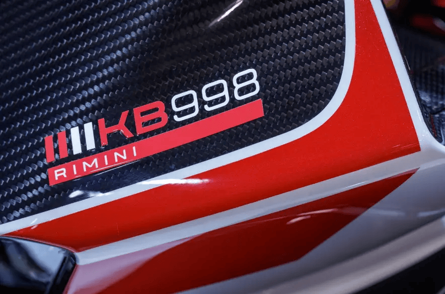從外觀上看,KB998 Rimini的設(shè)計(jì)充滿了戰(zhàn)斗氣息。車(chē)身線條流暢而銳利,碳纖維整流罩和電子控制的定風(fēng)翼不僅減輕了車(chē)重,更提升了車(chē)輛的空氣動(dòng)力學(xué)性能。車(chē)身上的“powered by Kawasaki”標(biāo)志更是彰顯了這款車(chē)的強(qiáng)勁動(dòng)力來(lái)源。