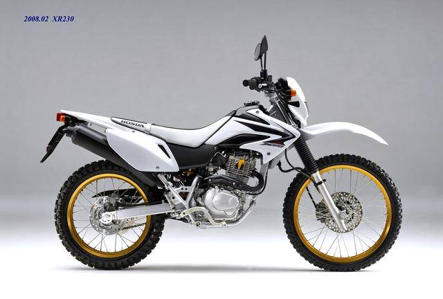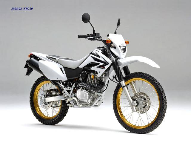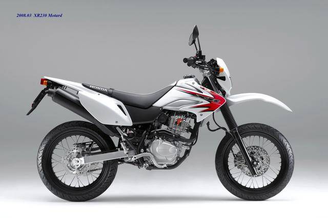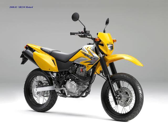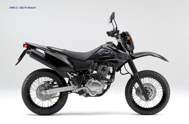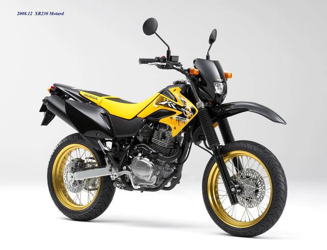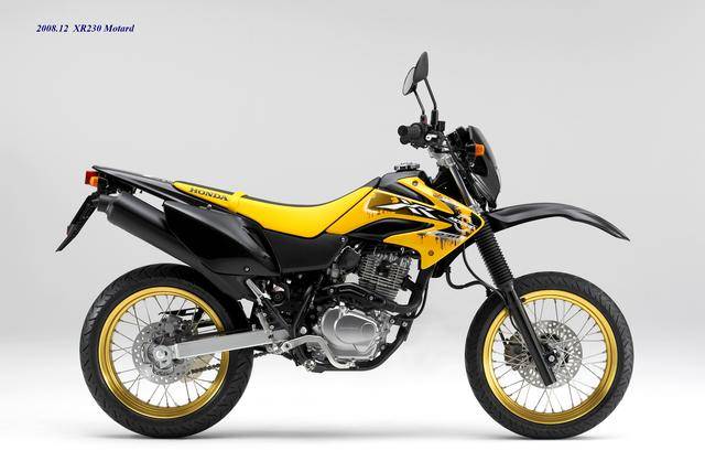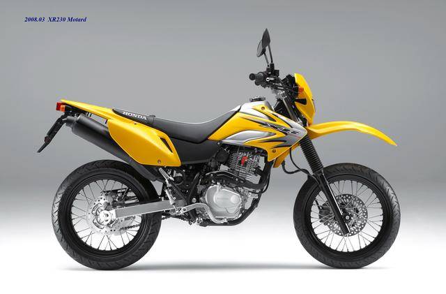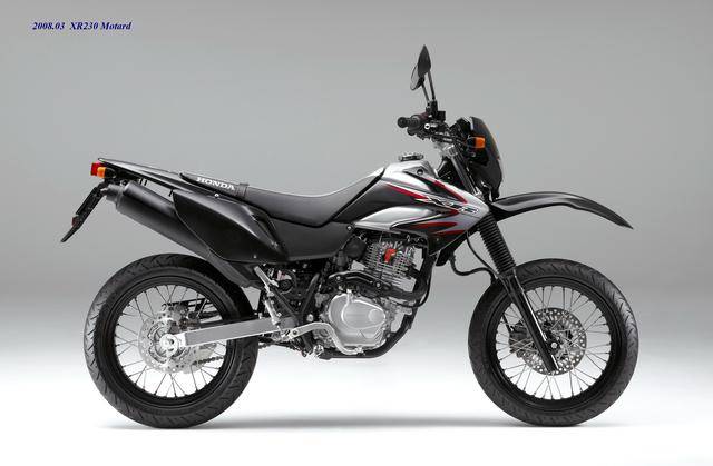 在 XR230 壽命周期的尾聲,Honda 在 2008 年二月推出了公路越野規(guī)格的 XR230 Motrad。該車基于 XR230 修改而成,有著相同的 MD36 工廠編號(hào),動(dòng)力單元同為 223 cc 的機(jī)器,但換裝了直徑為 17 英寸的前后車輪、公路型的輪胎,通過修改后懸掛的行程、鞍座高度輕微調(diào)低至 800 mm(XR230 為 805 mm)。
