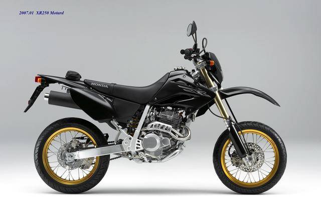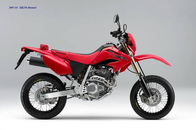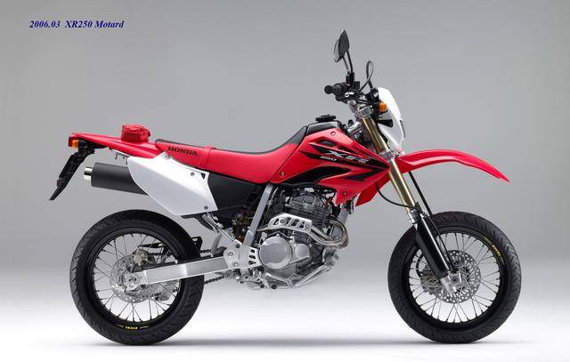到 2006 年三月,Honda 推出了經(jīng)過升級(jí)的 XR250 Motard:動(dòng)力單元、車架/底盤的主體配置保持不變(工廠編號(hào)仍為 MD30),但采用了新設(shè)計(jì)的前大燈、前輪擋泥板、油箱兩側(cè)的護(hù)罩,整體上采用了一個(gè)更加銳利的外觀風(fēng)格。