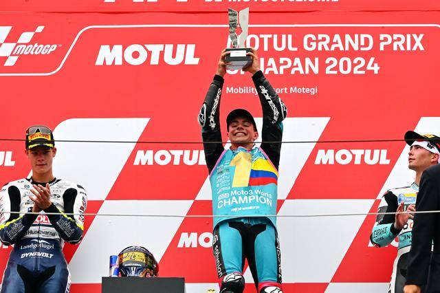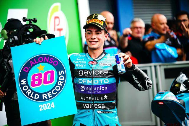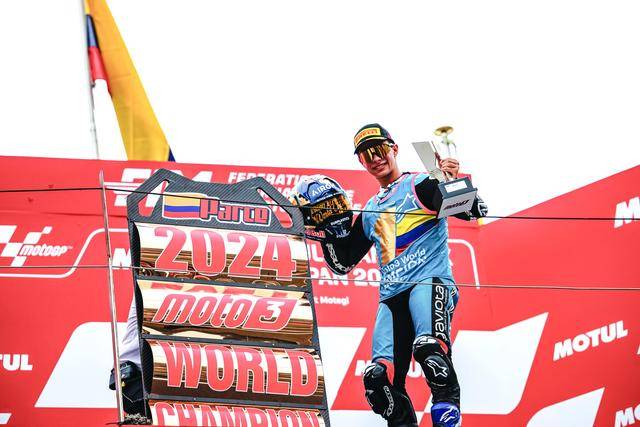 2023 年,阿隆索正式進軍 Moto3,首個賽季就奪得了四個分站冠軍、并成為歷史上第一位能夠在 WGP 登上頒獎臺的哥倫比亞車手,他最終在 2023 賽季獲得了年度總季軍。到了 2024 賽季,他轉(zhuǎn)為西班牙籍,并最后拿到了個人職業(yè)生涯的首個世界冠軍頭銜。