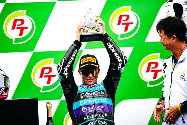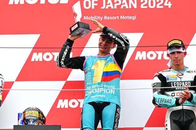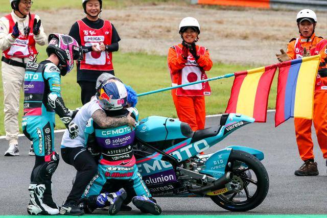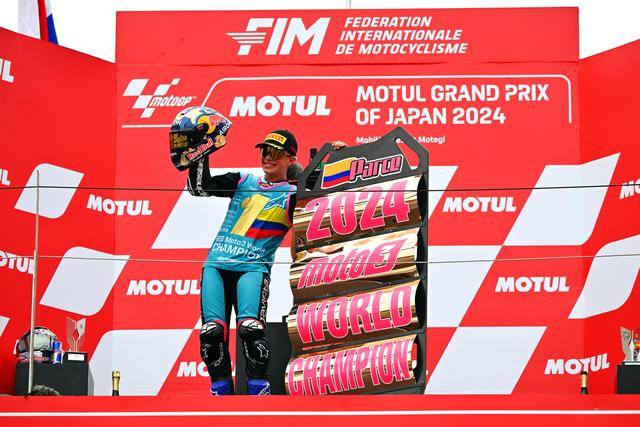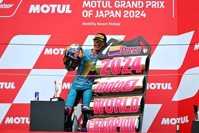 Moto3 級別,西班牙車手阿隆索(David Alonso)拿下了最后一站比賽的冠軍,取得了七連勝、同時也讓自己在今年的分站冠軍總數(shù)達到了破紀錄的十四個。實際上,阿隆索早在十月 6 日的日本站結(jié)束后,就已經(jīng)提前奪得了 2024 賽季 Moto3 級別的世界冠軍(車手年度積分總冠軍)。綜合整個賽季,最終以 421 分奪冠的阿隆索,領(lǐng)先亞軍(256 分)達 165 分,全季累計奪得了十四個分站冠軍、十五次登上頒獎臺,且在全部分站比賽里都拿到積分。