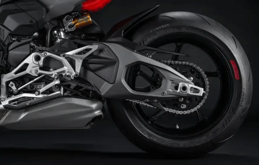 新款Streetfighter V4搭載了經(jīng)過升級的Desmosedici Stradale 發(fā)動機,排量仍為1103mL,但經(jīng)過重新設(shè)計的進氣系統(tǒng)、可變長度 進氣歧管、高升程氣門、V4 R同款的發(fā)動機和 油泵,為這 臺車提供了更加出色的動力輸出。新車的 最大馬力提升至214匹。此外,換裝與Akrapovi?共同開發(fā)的高性能排氣系統(tǒng)后,最大馬力可以進一步提升到226匹。