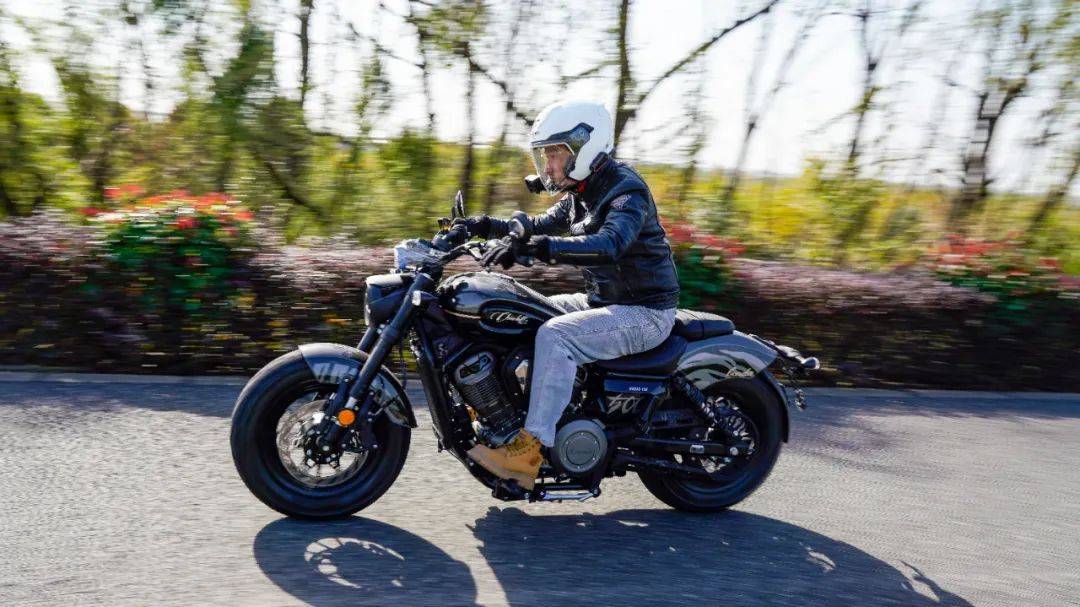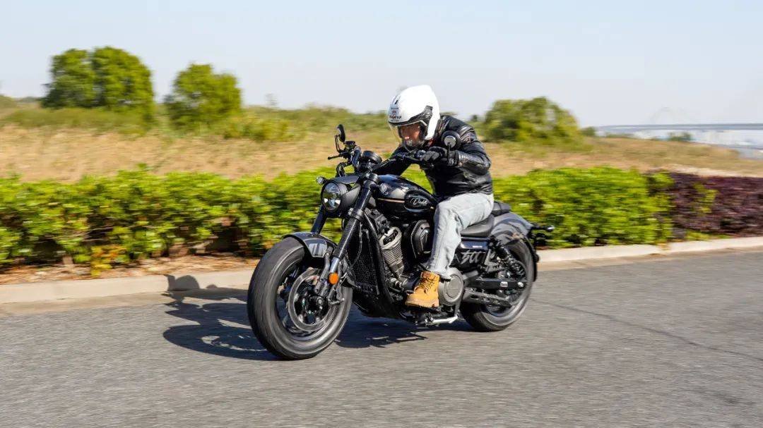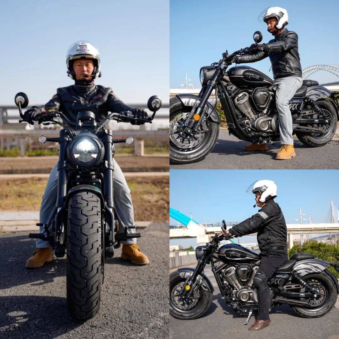 金吉拉500依然是前150,后180的大胎寬,顏值很到位,但犧牲了快速變線的靈活性,配合偏舒適調教的減震器設定,重剎時減震壓縮量明顯,加上同級最大1545mm的長軸距,導致彎道信心一般,不能自由壓彎,這也是經(jīng)典美式大巡航的正常表現(xiàn),它明顯更注重巡航的舒適性,在運動性表現(xiàn)上注定有所欠缺,這也是車型取向的必然。測試當天空氣溫度10度左右,經(jīng)過不間斷的彎道騎行,金吉拉500騎行體驗和傳統(tǒng)巡航車相同,在彎道中傾角稍大些就磨腳踏,車輛的彎道極限傾角不高,符合經(jīng)典美式巡航的預期。在通過單獨的弧形彎道時,整車的循跡性表現(xiàn)良好,同時整車在彎中穩(wěn)定性,輪胎抓地都表現(xiàn)良好。但通過連續(xù)的彎道就有些力不從心,快速變線時會有一定的遲鈍感,這里不是說它在彎道中是笨重的,雖然有212公斤的整備質量,彎道感受并不笨重,當然也談不上輕盈,屬于美式巡航的正常表現(xiàn)。總之,什么車干什么活,一臺美式巡航能提供炫酷的顏值,舒適的巡航,優(yōu)異的排氣聲浪,可接受的彎道體驗,給駕駛者良好的情緒價值,滿足這些,金吉拉500已然出眾,表現(xiàn)亮眼。
