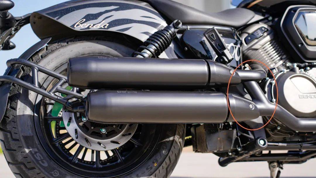 說到聲浪,就必須要點贊金吉拉500,將V型雙缸的特有聲浪發(fā)揮得淋漓盡致。原廠聲浪就相當優(yōu)秀,低轉速時聲浪較悶,并不炸裂,還帶有一絲的馬蹄聲,隨著轉速的攀升,排氣聲浪渾厚有力,澎湃激情,很有大排巡航的味道,個人也是非常喜歡這樣的設定。總結先說一個槽點吧,就是靠近小腿位置的排氣管防燙罩(如下圖所示)依然較燙,夏天如果光腿上車或停車,小腿容易蹭到防燙罩,就會比較燙,解決辦法是裹防燙石棉。