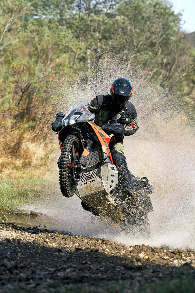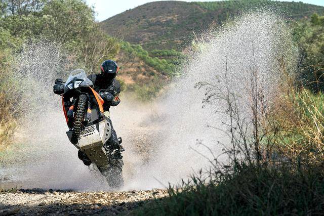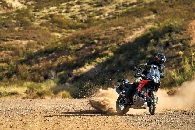 車(chē)體沿用了鋼制的承載式車(chē)架,WP 配套的前后懸掛系統(tǒng), 數(shù)字式的儀表板,前雙碟、后單碟的制動(dòng)系統(tǒng),前 21、后 18 英寸直徑的車(chē)輪標(biāo)配了塊狀表面的、Pirelli倍耐力Scorpion Rally STR “ 蝎子” 拉力輪胎。電子輔助控制系統(tǒng)方面,標(biāo)配了可選的騎行模式、牽引力控制系統(tǒng)和彎道 ABS。