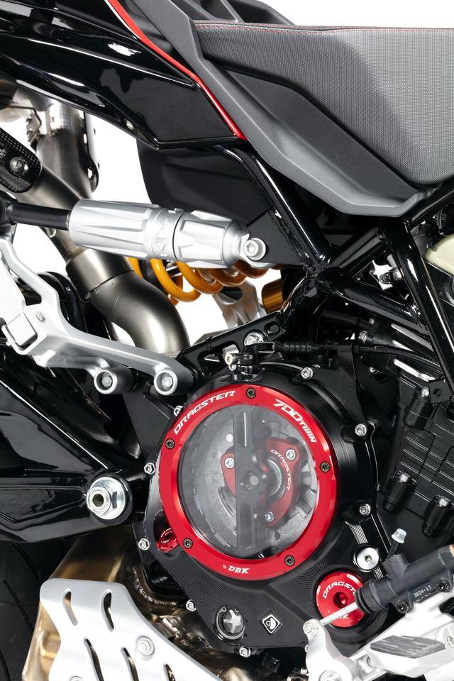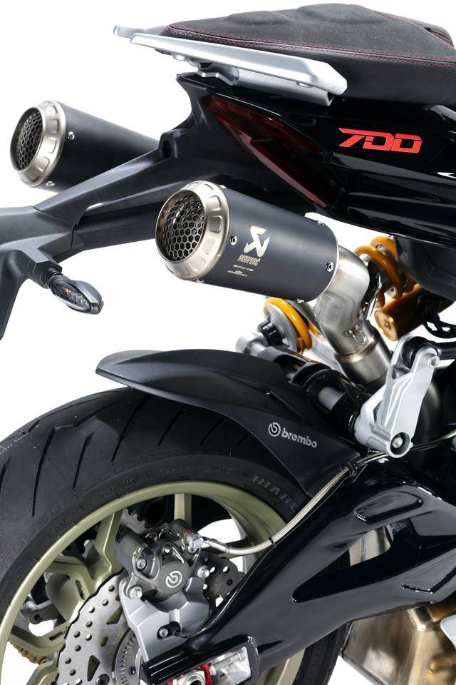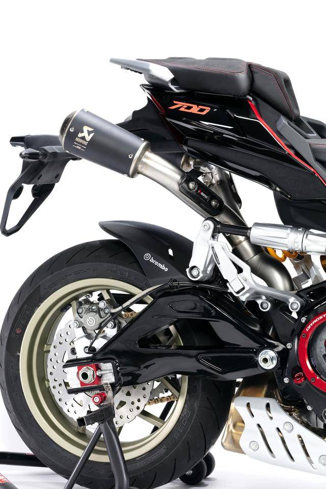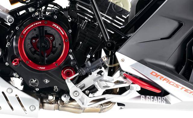 配置與規(guī)格上,意特捷 Dragster 700 Twin 工廠限量版搭載一副水冷四沖程直列兩氣缸的發(fā)動機,排氣量 692 cc,Delphi的電子燃油噴注系統(tǒng),六檔的變速齒輪箱,標配 Akrapovic阿克拉波維奇的鈦合金排氣系統(tǒng),最大動力輸出 51kw(約 68 匹)。