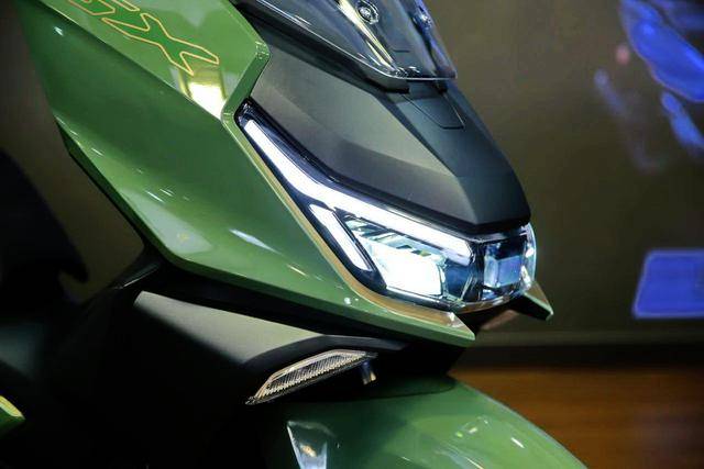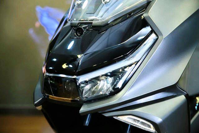 2、圖片中可見,NS150GX 采用了一個流線型的整體輪廓 + 細(xì)節(jié)上棱角分明的外觀組合設(shè)計:流線型的前部整體輪廓、配合前風(fēng)擋,可為高速巡航之下、提供迎面導(dǎo)流的防風(fēng)保護(hù);而車頭兩側(cè)的棱角,則扮演著一個如同跑車般的、隱藏式定風(fēng)翼的角色;