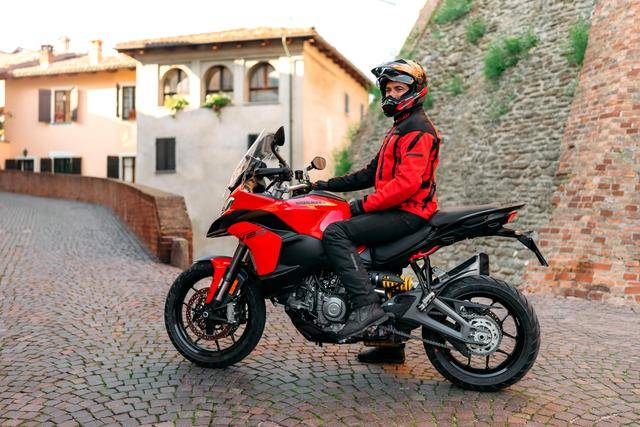 其他的配置,包括 Brembo 布雷博配套的制動系統(tǒng),全新的 TFT 全彩色數(shù)字式儀表板,前 19、后 17 英寸直徑的車輪、在規(guī)格上與第一代 V2 相同,標(biāo)配了 Pirelli倍耐力的 Scorpion Trail II 輪胎。電子輔助控制系統(tǒng)方面,集成了 6 軸的 IMU,標(biāo)配了五個(gè)可選的騎行模式(Sport 運(yùn)動,Touring 旅行,Urban城市,Enduro 越野,Wet 濕地),四個(gè)可選的動力輸出模式(High 高、Medium 中、Low 低、Off-Road 非鋪裝公路/越野),DTC 牽引力控制系統(tǒng),彎道 ABS,DQS 2.0 快速換檔系統(tǒng)等。
