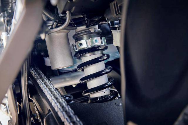 4、前后懸掛系統(tǒng)都采用了經(jīng)過改進(jìn)的設(shè)置:以良好的公路性能和獲得柔軟的越野顛簸吸收作為目標(biāo),前后懸掛的阻尼都經(jīng)過了修改,前叉的壓縮和回彈都略為調(diào)軟、而后減震則調(diào)得相對(duì)硬一點(diǎn)(后減震的壓縮/回彈被調(diào)硬),從而讓車輛既強(qiáng)化了在崎嶇地形上的可控性,同時(shí)也保持了公路上的穩(wěn)定性;