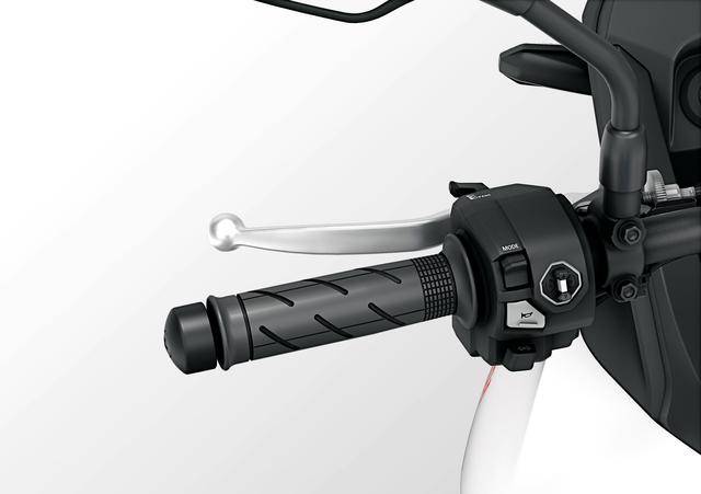 5、新的五英寸 TFT 全彩色數(shù)字式儀表板,左車把上的按鍵開關(guān)采用了四向撥動(dòng)的全新設(shè)計(jì),新的車身圖案/貼花等。