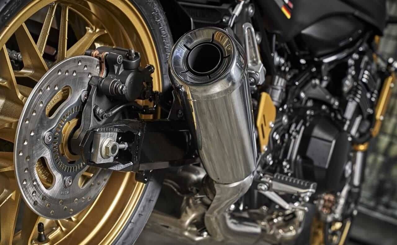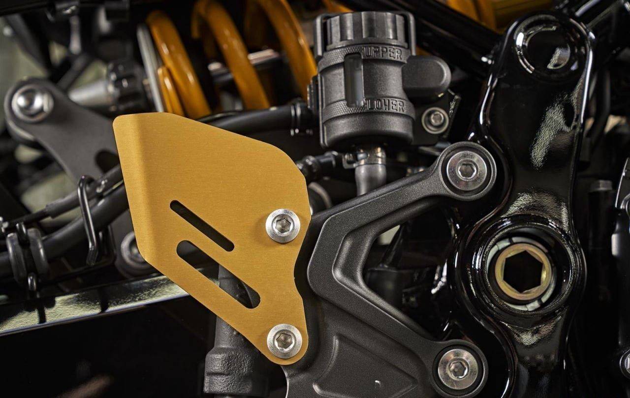 外觀上,這款紀(jì)念版車型采用了金屬黑與金屬霧碳灰的組合,低調(diào)卻極具奢華感,不僅延續(xù)了Z900RS SE的基本設(shè)計,還特別添加了不少金色點綴,例如,左右腳踏護板、鋁合金握把端子和鋁制水箱側(cè)蓋都經(jīng)過金色陽極處理,顯示出這款車的特殊身份,懸掛部分也有所升級,配備了Ohlins后避震器,提供更好的行駛穩(wěn)定性。