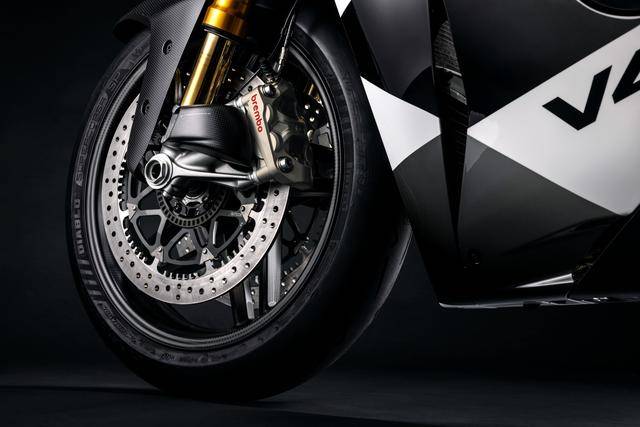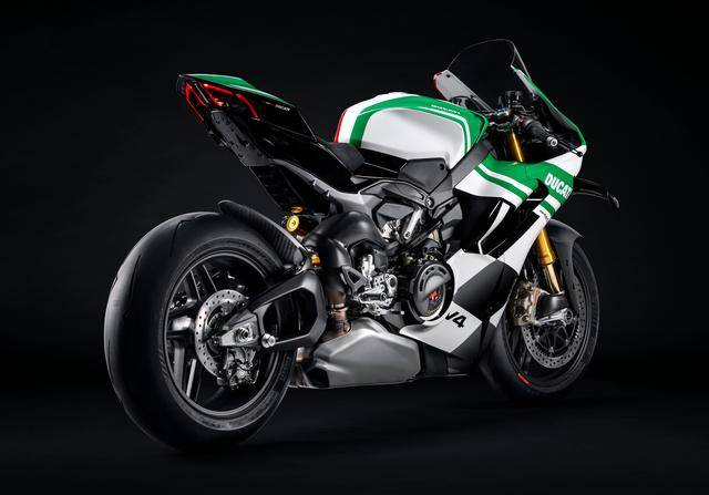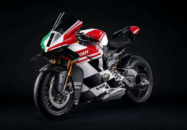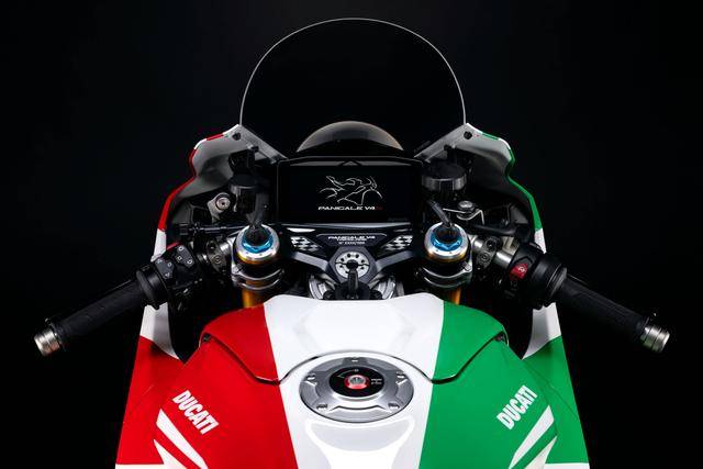 新的 Panigale V4 Tricolore 三色限量版、基于標(biāo)準(zhǔn)型的新一代 Panigale V4 修改而成,搭載一副經(jīng)過改進的 V 型 90 度四氣缸 Desmosedici Stradale 發(fā)動機,排氣量 1103 cc 保持不變,原廠標(biāo)準(zhǔn)狀態(tài)下的峰值動力輸出為 158.9 kw(約 216 匹,歐洲版);車體方面,采用了一個設(shè)計靈感來自 916 的外觀造型,集成了空氣動力學(xué)組件的新整流罩,鋁合金制的車架、全新設(shè)計的左右對稱中空式后搖臂,Ohlins 奧林斯的 Smart EC 3.0 電控懸掛系統(tǒng),數(shù)字式的儀表板,集成了六軸 IMU 的大量電子輔助控制系統(tǒng)等。