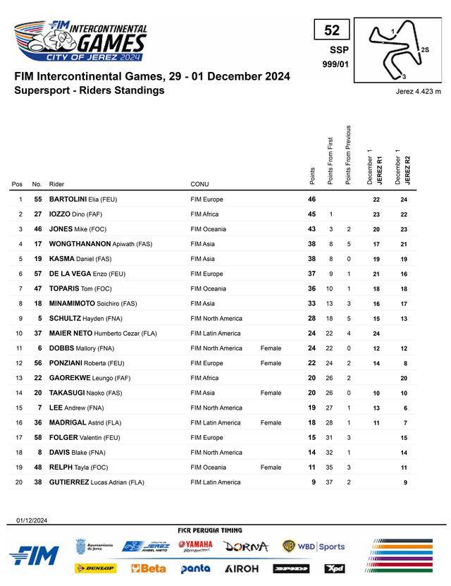 十一月 29 日 - 十二月 1 日,F(xiàn)IM 國(guó)際摩聯(lián)首屆洲際運(yùn)動(dòng)會(huì)(FIM Intercontinental Games,簡(jiǎn)稱 ICG)在西班牙捷雷斯(Jerez)賽車場(chǎng)舉行。舉辦 ICG 這一構(gòu)想、早在 2002 年的時(shí)候就已經(jīng)被提出,但直到二十多年之后才正式實(shí)現(xiàn)。賽事將以舉辦城市作命名,首屆 ICG 的比賽名為捷雷斯洲際運(yùn)動(dòng)會(huì)(City of Jerez FIM Intercontinental Games),暫定為兩年舉辦一次。